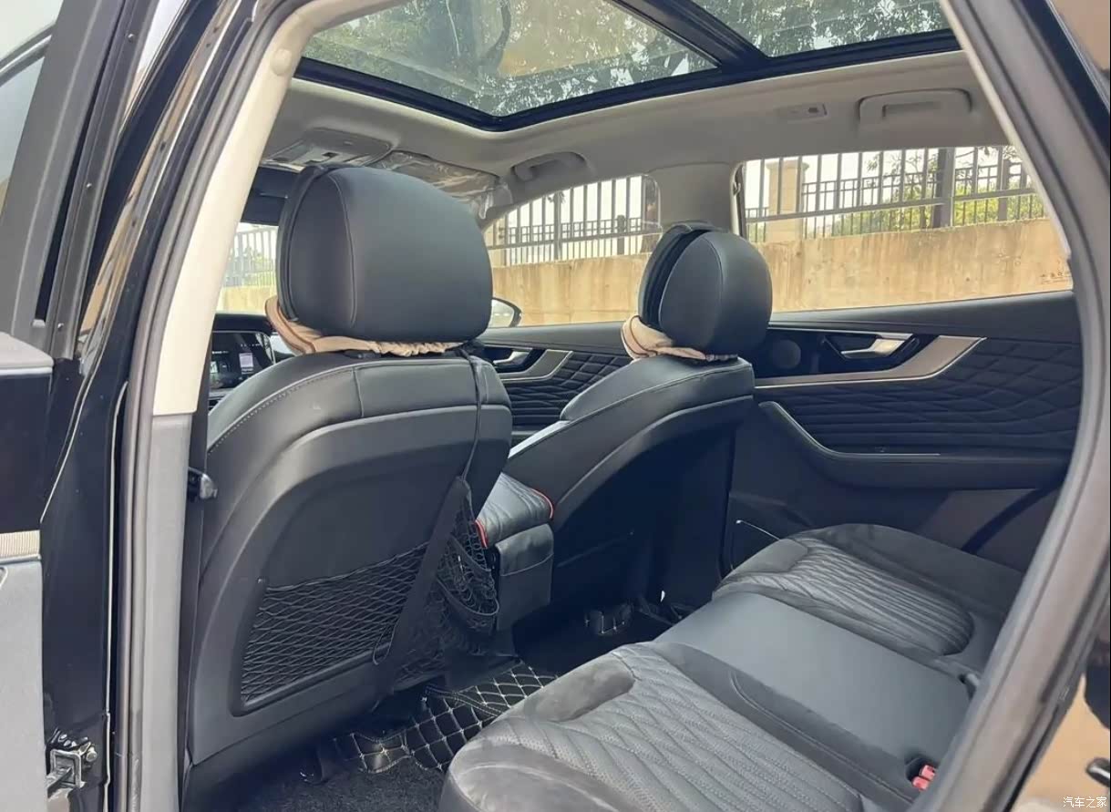 从空间方面来说:够用之上,藏着不少家用巧思。红旗HS5的2870mm轴距,直接把“家用SUV”的空间优势拉满:前排调整到我180cm的驾驶坐姿后,后排腿部还有两拳多的余量,坐三个成年人也不会挤得贴肩膀;后备厢常规容积能装下婴儿车和两个登机箱,放倒后排座椅后甚至能塞下折叠自行车,周末带娃露营、搬大件快递都没掉过链子。