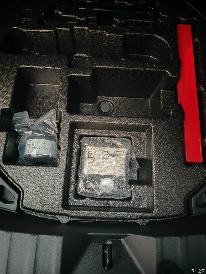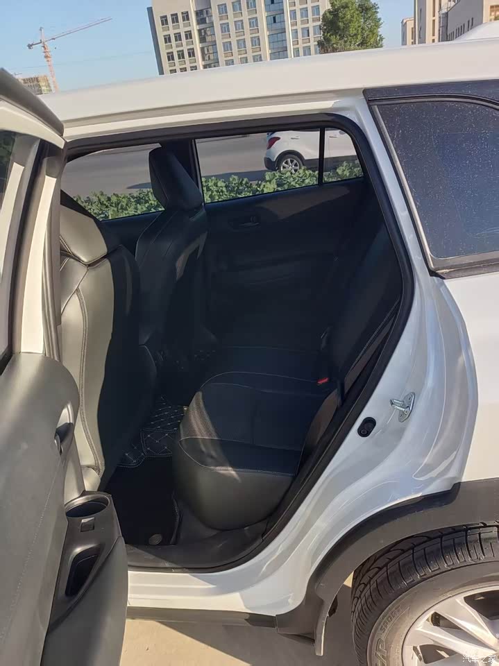 后排空间不大,腿部空间不足,坐一个成年人后基本顶到前排座椅。后备箱取消备胎给了充气泵和胶水,用一个圆形大泡沫箱装着,有点浪费空间。 胎噪在高速明显,尤其是在粗糙路面或高速行驶时,轮胎卷起的噪音会清晰地传入车内,是车内噪音的主要来源。