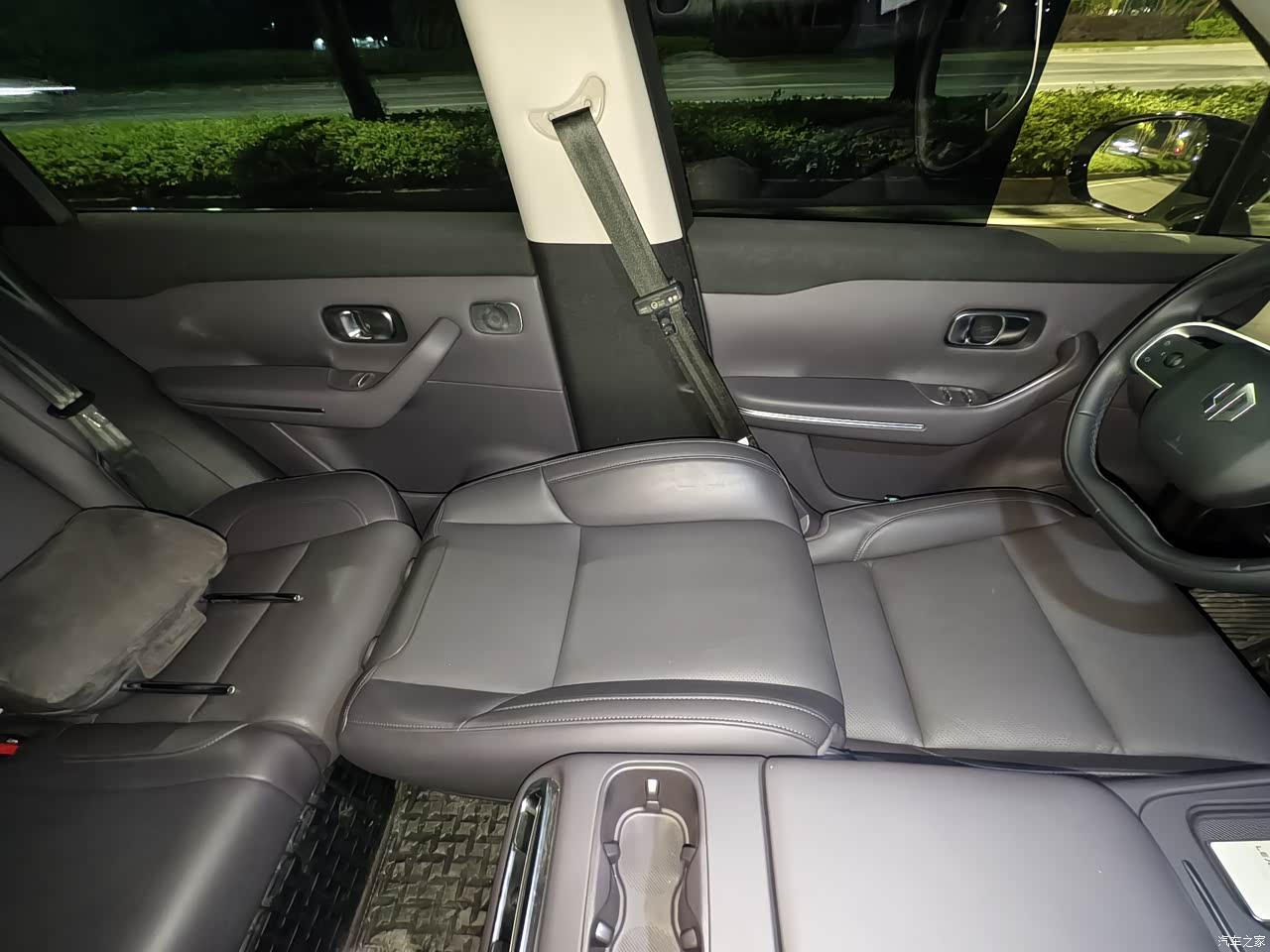 内饰方面:我选的是星恒紫的内饰个人是比较喜欢深一点的颜色,这个颜色很奇妙,在阳光下很紫,但关门之后颜色又变得比较深,全车采用皮质座椅很舒服,前排座椅通风孔的皮很软像婴儿皮肤一样,中控台和门都是用皮还有翻毛皮包围很不错