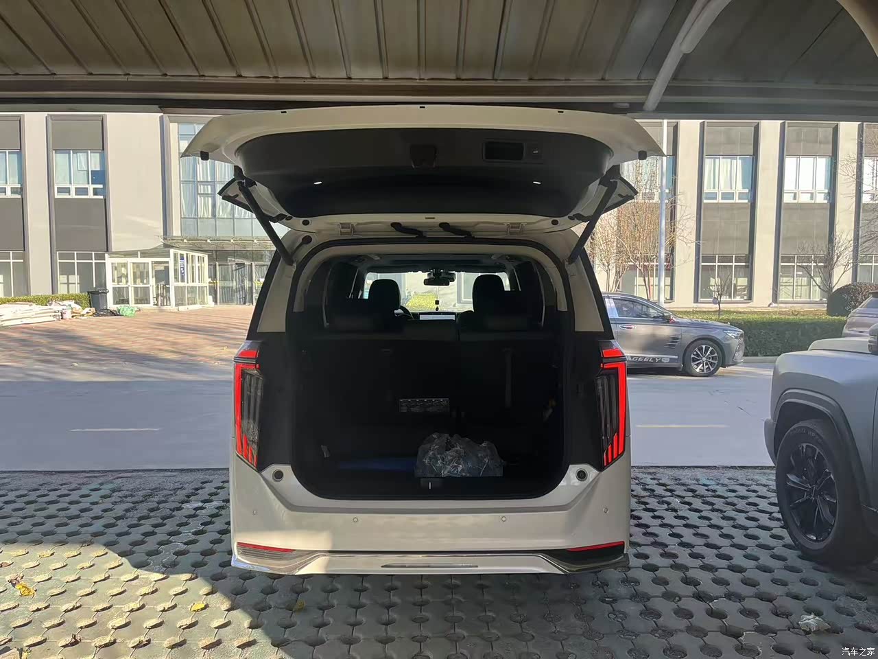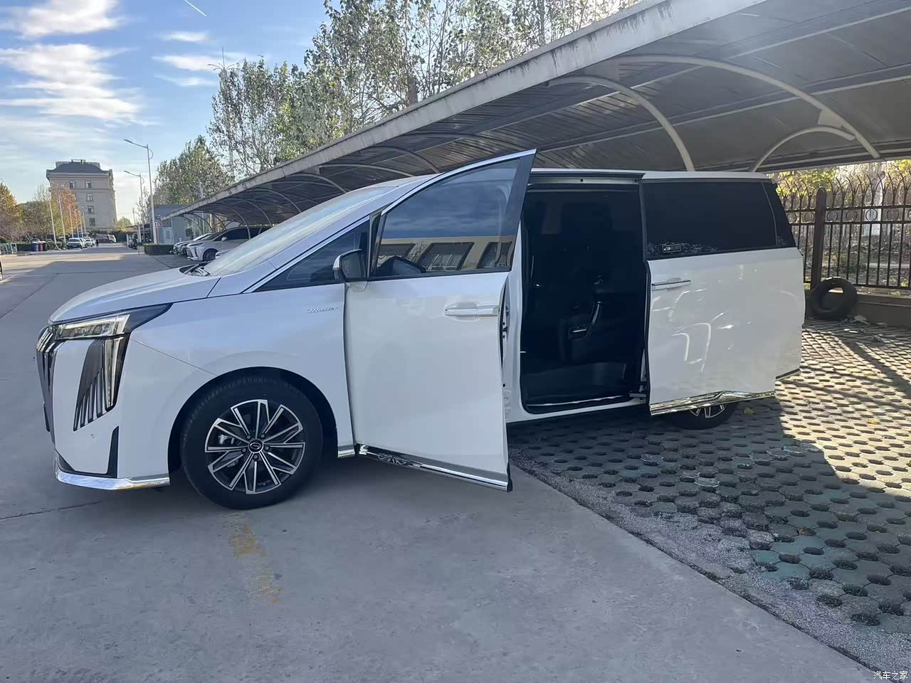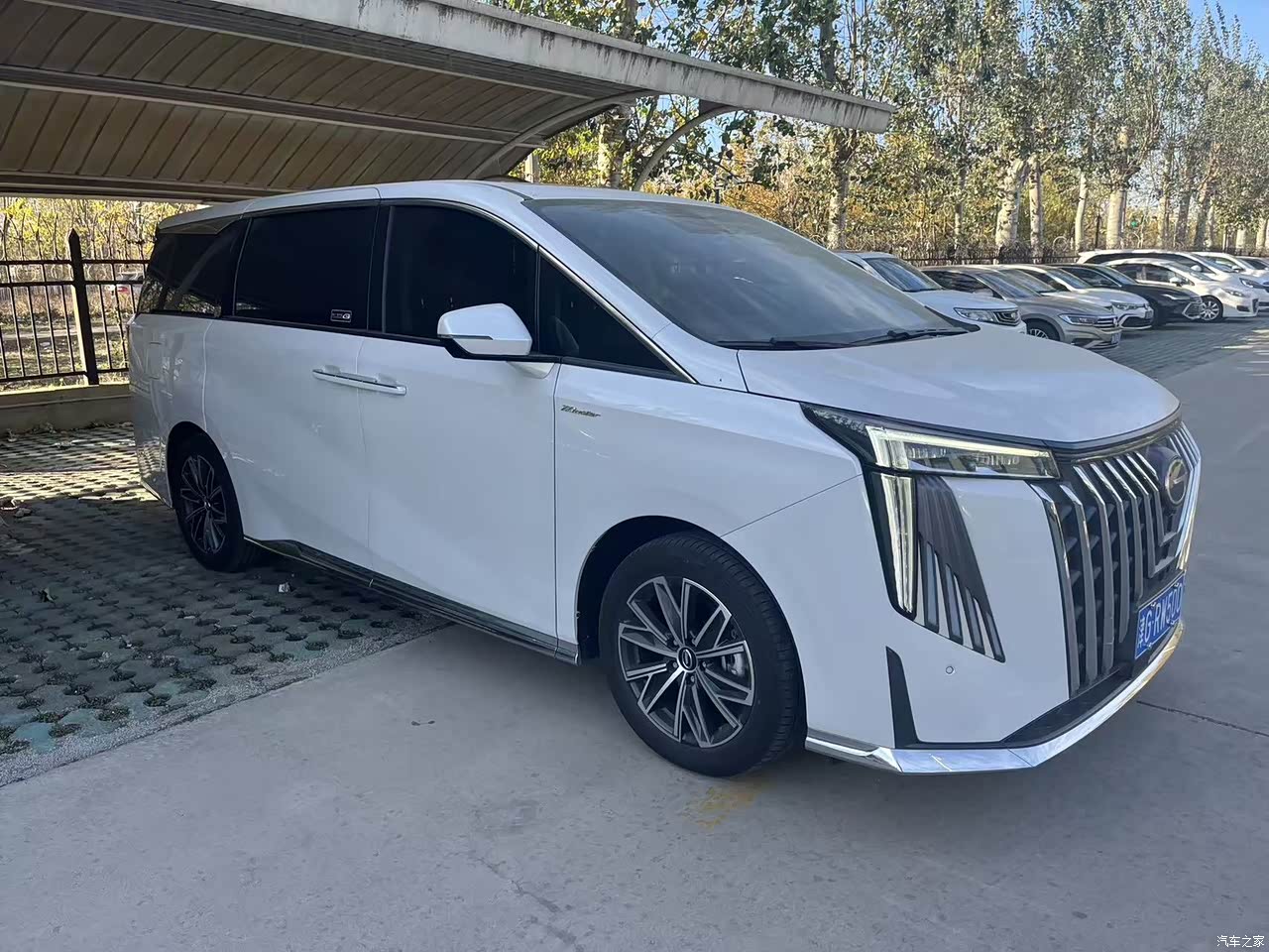 当初选它一半就是因为长得好看,大师版那瀑布似的中网往那儿一放就特大气,配着亮白的车身,不管是接娃还是全家出去玩,不显得老气商务还特有家的温馨感,出门也有面儿,最绝的是白外黑内,一开车门就觉得质感上来了,内饰摸着手感软乎乎的,新车味儿也不大,通几天风就没了。买MPV不就图个空间?这台真没让人失望,我们一家五口坐进去松松快快的,一点不挤,不管坐前面开车还是去第二排歇着,头和腿都有地方不用缩着,重点说第二排,通风、加热、按摩都有,我妈一上车就开按摩,说比家里的还舒服,跑长途也不喊累,就连好多MPV不顶用的第三排,这台也能正经坐人,膝盖离前面还有空隙,靠背还能调,坐俩小时也不难受,不用再委屈自己,就是后备箱不算大,平时放俩婴儿车加几个箱子刚好,要是满员还想多带大件,就得好好摆摆才行!开着也比我想的强多了,本来以为这么大的车会笨,结果完全不是,动力够使,起步顺顺当当的,想提速也有劲儿,就算坐满了人、装满了东西,超车也不费劲,方向盘也轻,我老婆偶尔开也不觉得累,跑高速的时候方向盘会变沉特稳,过弯也不晃,不像开船似的,过减速带、坑洼路的时候震感也小,后排家人都说坐着舒服!配置方面这个价能有这么多真的值,双侧电动滑门太实用了,老人不用使劲拉门,孩子也能自己按,下雨天还淋不着,全景影像更是好东西,这么大的车倒车、过窄路看屏幕就够了,不怕刮着,安全配置也全,跑高速分神了会提醒,还有主动制动,虽然没用到过,但有就放心,就是车机偶尔有点卡,语音识别有时候不准,不过平时就用导航、听音乐,不影响啥,能接受!油耗的话给大伙儿参考下,平时在市区开早晚堵车,油耗不算高也不算低,中规中矩,跑高速匀速开油耗能降不少,这么大的车这个油耗我觉得挺合理,总不能又要空间大、动力足,还指望跟小车一样省油,不现实!