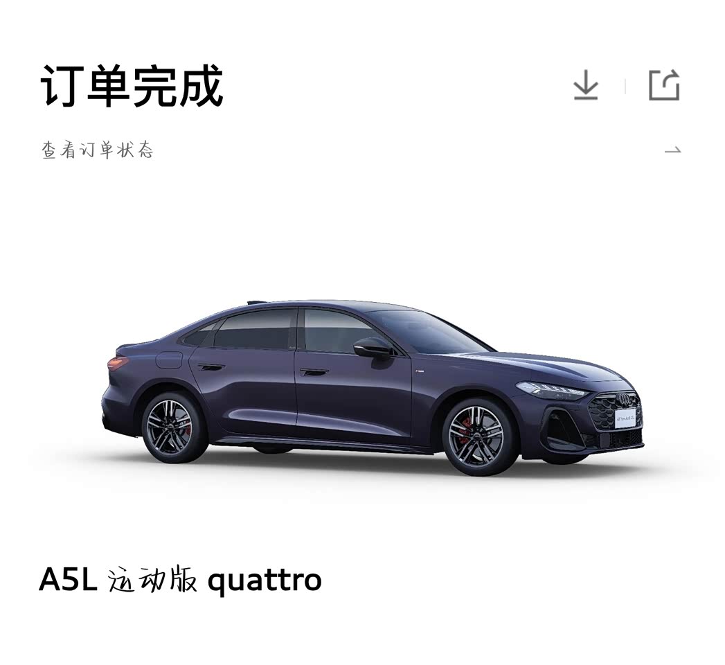 价值体验:从7.26日大定到10.13提车,虽然等了很久,但还是觉得很值得,现在的订车权益也很合适,非常值得入手,一直很喜欢奥迪这个品牌,一开始虽然考虑过ct5和三系,但这两款车在智能化和驾驶体验上确实不如一汽奥迪a5l更好,所以最后还是选择耐心等待a5l的上市,也顺利成为了首批四驱版的车主