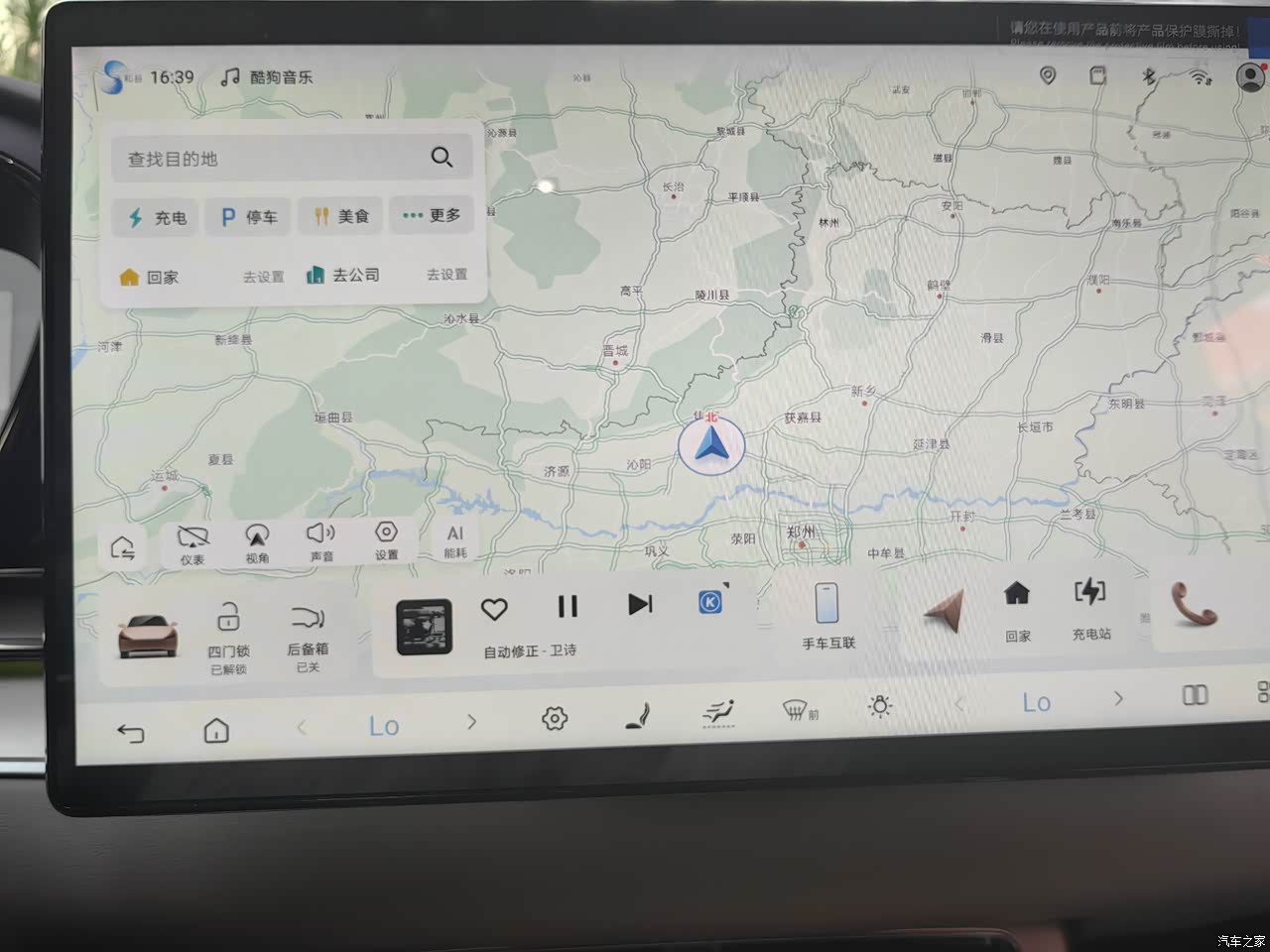 内饰也比较好看,中间的中控大屏非常大,然后跟平板一样。嗯听歌看歌词儿,给家里人看抖音。还可以玩游戏。小孩也能看电影。整体来说是非常不错的。嗯,流畅度也可以。