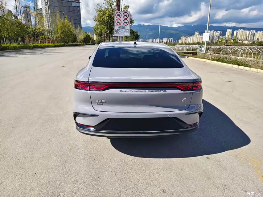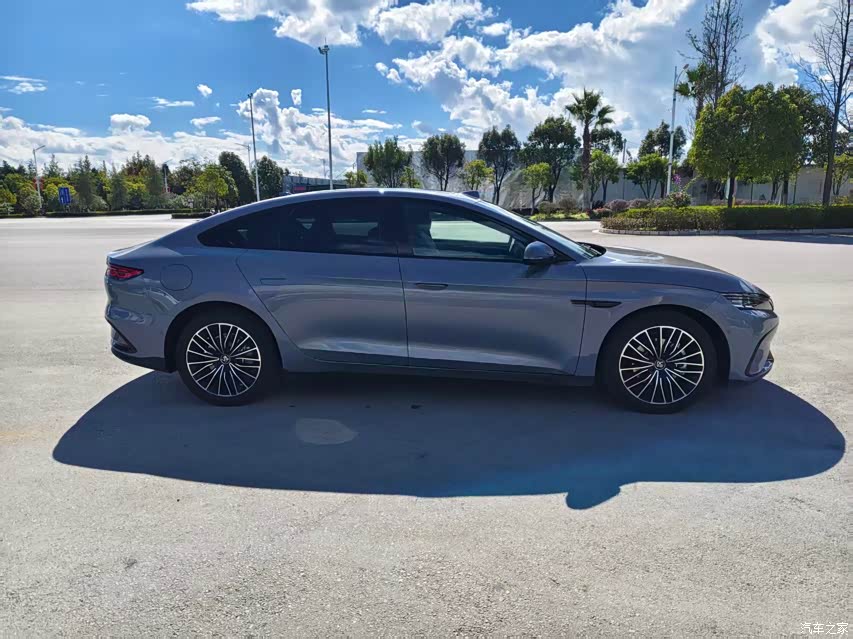 侧面线条顺,溜背从车头一直到车尾,隐藏式门把手和低风阻轮毂,看着干净也好用。车身不高不矮,停车不费劲,家用、商务都不违和。 尾部贯穿尾灯和高位扰流板简洁利落,混动标识低调,不张杨但有辨识度。车漆质感扎实,颜色耐看,久看不厌,整体就是那种把高级感做成日常的好看:不浮夸、不复杂,开出去体面,停在小区也不惹眼。颜值和实用性一起在线,每天用着都顺手。未央灰车漆与黑化套件搭配,运动气息浓烈。就是冲着外观去买的