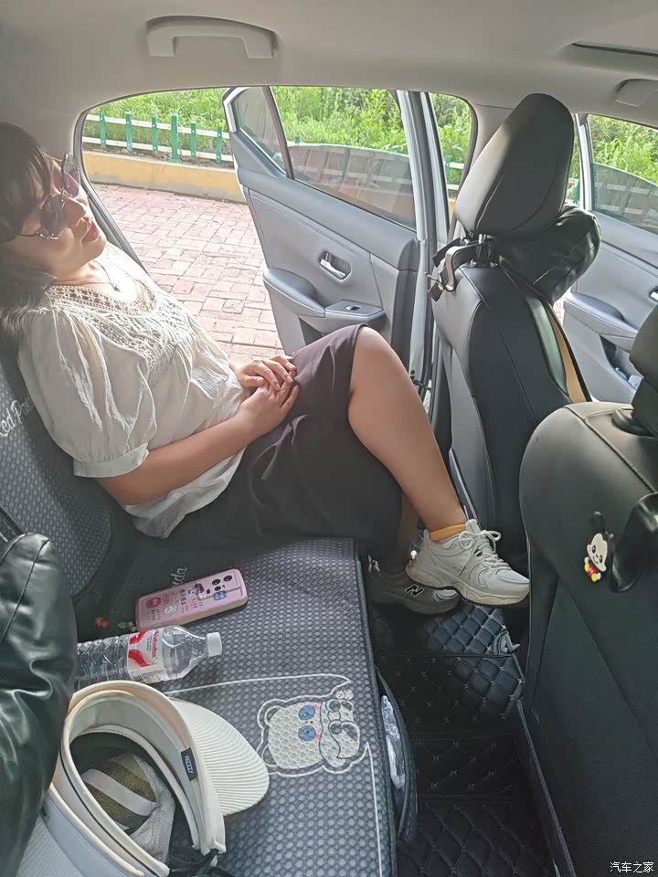 主驾座椅头部还剩一拳多距离,副驾放倒后躺在上面可以实现休息自由,后排腿部剩余两三拳距离,我媳妇1米6的身高也能轻松跷二郎腿,头顶空间也是足够用,