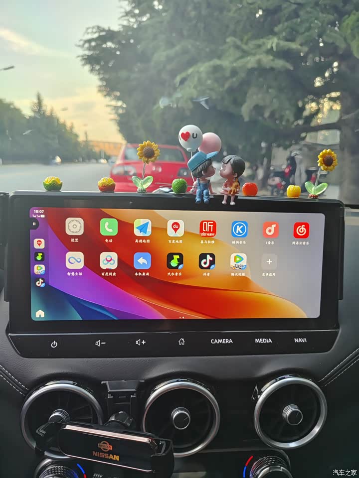 内饰方面也很时尚,12.3英寸的悬浮大屏和下面三个炮筒式出风口是这辆车车内最吸引我的地方,就跟“奔驰”内饰的出风口差不多样子,用手就能轻易调节出风口放向,实用不说在颜值上配合中控屏幕上整个车看起来更有格调和运动气息。媳妇觉得加些小摆件饰品会好看,于是便有了现在的这个可爱的样子;门板和中控台有很多经常接触到的地方都用到了皮质包裹,手感还是不错的;当然也有些部位是塑料的,不过也能接受,毕竟价位摆在这了,不能啥都给咱啊。