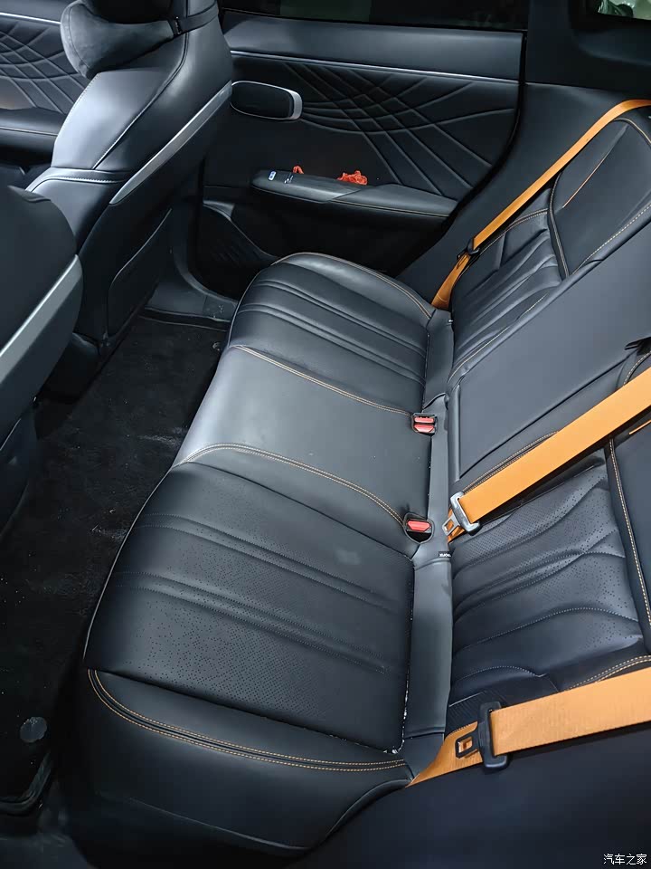 拉开车门,最抢眼的就是那块15.6英寸的“向日葵”中控屏了。它不仅显示清晰,还会像向日葵一样主动偏转迎接主驾或副驾,甚至能用语音控制,这让操作变得既直观又有趣。 但黑橙配色的安全带有点突兀。
