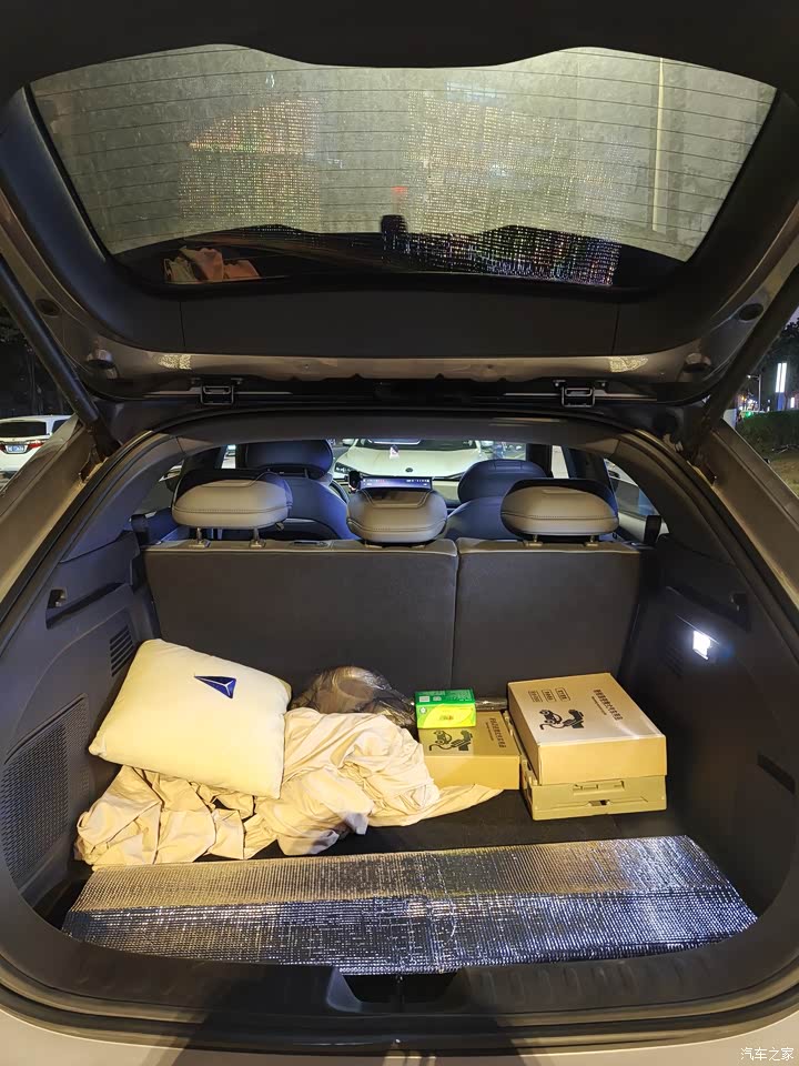 他的空间挺大,特别是拿后排来说,他有非常宽松的腿部空间,可以轻松翘起二郎腿,把我同事们都羡慕坏了,每次下班都要争着坐我车哈哈。还有1.9平方米的超大揽星全景天幕一直延伸至后排头顶,给后排的乘客一种很强的开阔感,一点都不感觉到压抑。还有他的后备箱,有464升,放行李箱,露营装备绰绰有余。还有就是后排座椅可以比例放倒,放倒之后就是纯平的扩展空间。我平时在公司中午午睡的时候都是来我的深蓝大酒店。他还有单独很深的前备箱,平时放味道比较大的东西,像鱼类,或者是运动完后的衣服裤子,都是不错的。