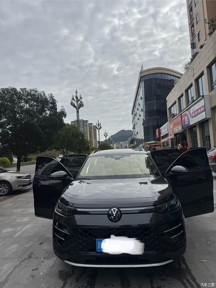 探岳L这款车外观来说挺时尚,包括轮廓很有肌肉感,感觉外面时尚又大气、车后面这个很有肌肉感加上他的贯穿式尾灯感觉整个车气质很特别,开在路上都有人会看下我的车,锰石黑这个月颜色看起来很霸气,只是有点不耐脏,喜欢他的颜色就要接受他的不好。