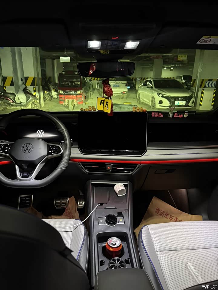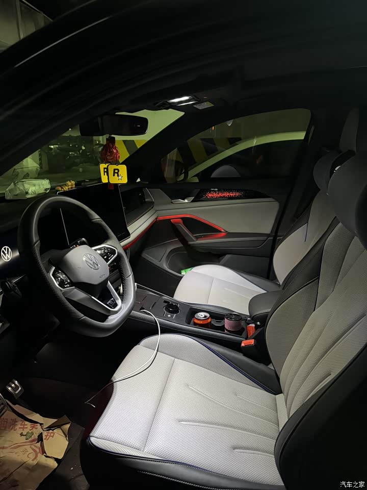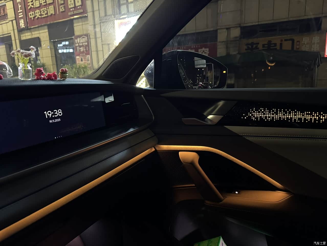 内饰气氛灯很不错适合喜欢氛围灯的人,挡也变成怀挡一样,中间就空出来一块可以放手机啊钥匙这些东西,中控屏15寸真的很不错,车的内饰就像升了一个档次一样,看电影哪些也可以在车上看挺方便