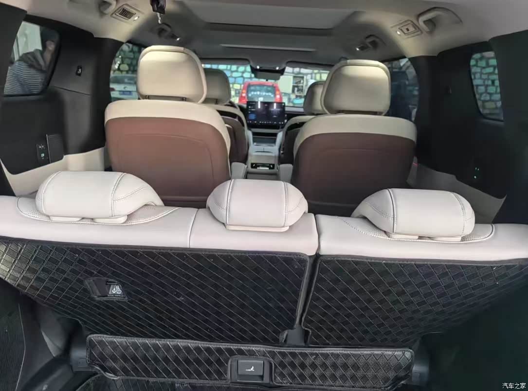 MPV的优势就是空间大,二胎家庭的首选就是MPV,类似什么7座SUV,那玩意后排就是鸡肋,还是商务车比较舒服,前排有2拳的头部空间,座椅的坐垫长度足够,能够完全承托大腿的,腿部距离中控也有4指宽的距离,活动空间宽裕,副驾驶的深度足够,腿部也有1拳。 二排座椅有前后滑轨,头部一样2拳,很明显二排的坐垫要比第一排更长,再加上腿托的支持,腿部放松效果很好,但是腿托还是要注意一下和前排的空间,不然容易挤到脚。第三排空间稍微有些拥挤,但是也够用了,基本瘦子和孩子都可以坐着舒服,座椅也不算短,还有独立的音响、USB接口、靠背的调节和水杯槽,后备箱不是特别大,但是家用足够出行足够了。