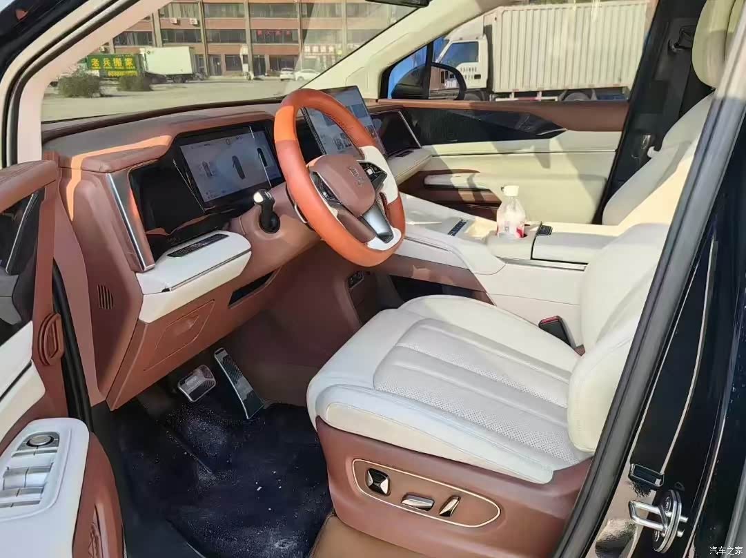 运动模式后,动力明显充沛不少,超车时发动机介入的瞬间,我能感受到明显的推背感。 低速行驶时车厢静谧性优秀,电机声几乎被隔绝,但车速超过70公里后,风噪逐渐明显,我坐在后排甚至能感觉到玻璃轻轻的震动声。 方向盘握感非常不错,粗细适中,表面材质细腻,用手摸起来特别舒服。转向手感偏轻盈,车身响应虽不如轿车灵活,但胜在指向清晰,没有明显的虚位,日常开起来非常顺手。不过作为一台大块头MPV,转弯半径确实不小,大概在6米左右,掉头需要两个车道才能完成,市区窄路会车时略显局促。纯电模式下起步柔和,油门跟脚,加速线性偏向舒适,没有那种特别窜的感觉。