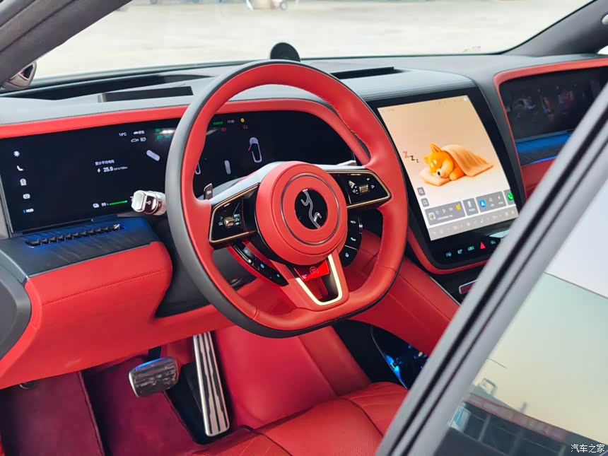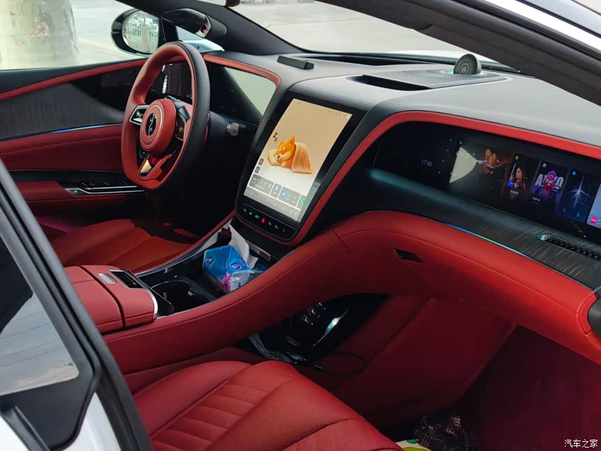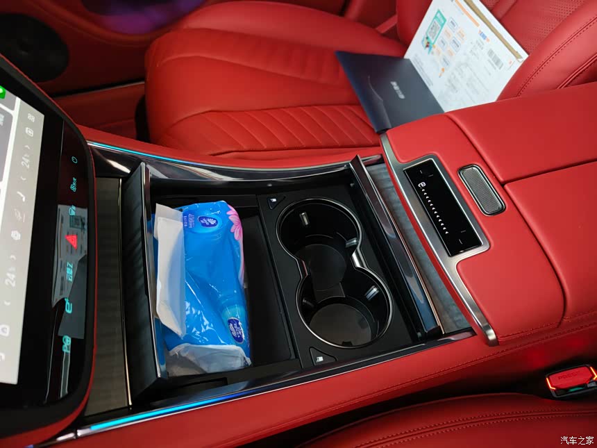 我选的红色皮革内饰触感细腻,品质感十足。两块巨幅屏幕分辨率高,车机系统反应迅捷。储物空间设计得非常周到,隐藏式抽屉、雨伞槽、后排冷暖箱等细节考虑到位,大大提升了便利性。