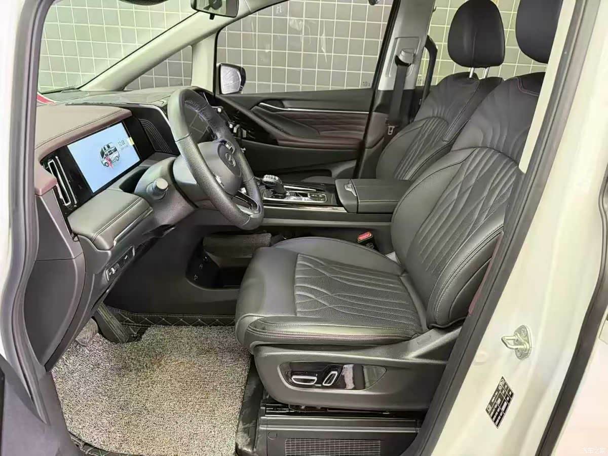 内饰挺豪华,皮质细腻,缝线也精致。自己升级了地板有档次,中控设计很有科技感,朋友一坐进来就说还是MPV坐着舒服,哈哈。