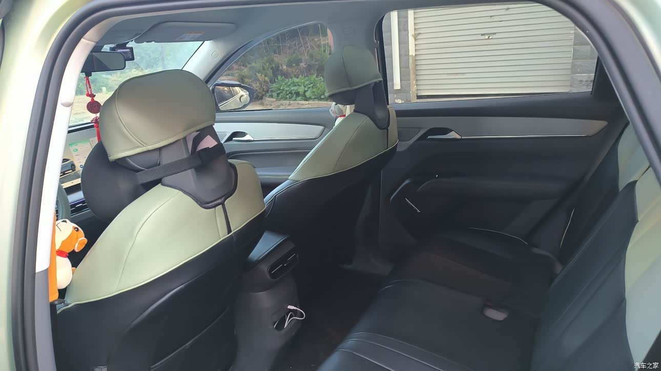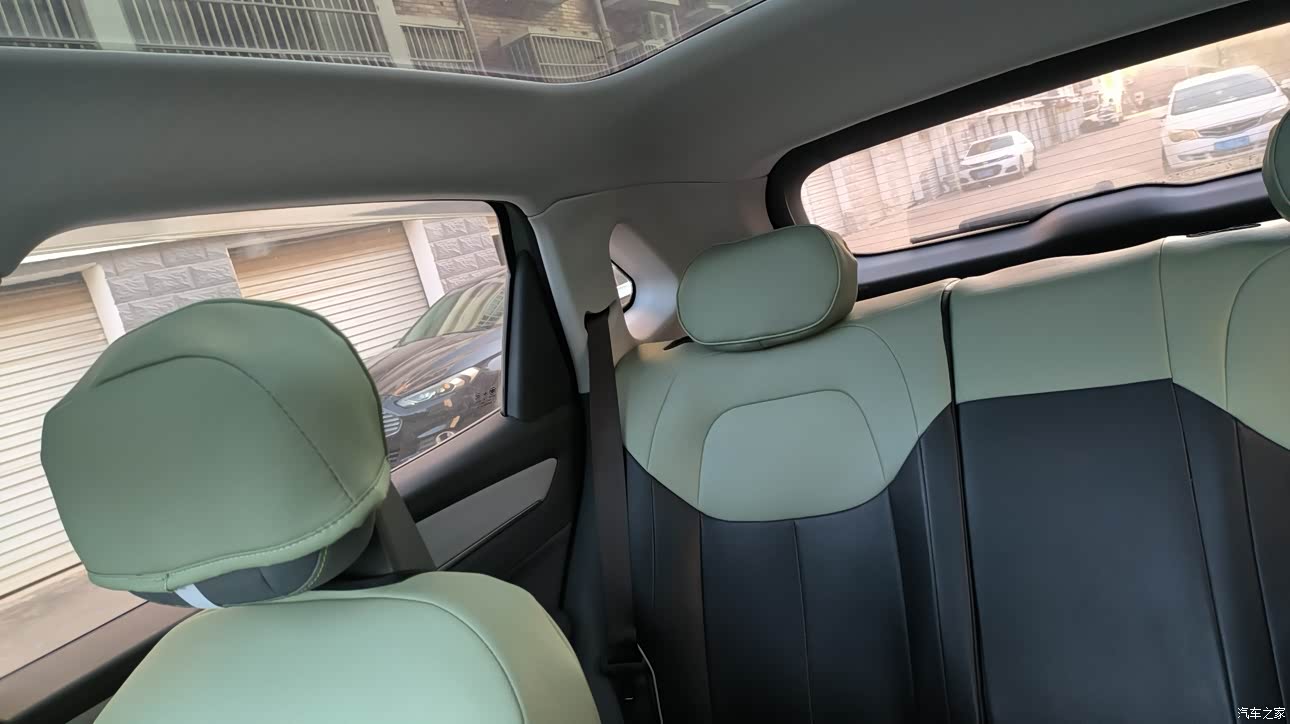外观沉稳大气,线条流畅有力。我选择的雀舌翠颜色很耐看,不低调也不会太高调,搭配绿色新能源车牌不会太突兀,前脸设计和细长的尾灯都很有辨识度,整体颜值符合个人审美。搭配全景天窗更是绝了,不仅让车内采光通透到不行,坐后排的家人还能抬头看蓝天、赏夜景,视野宽阔又舒服。