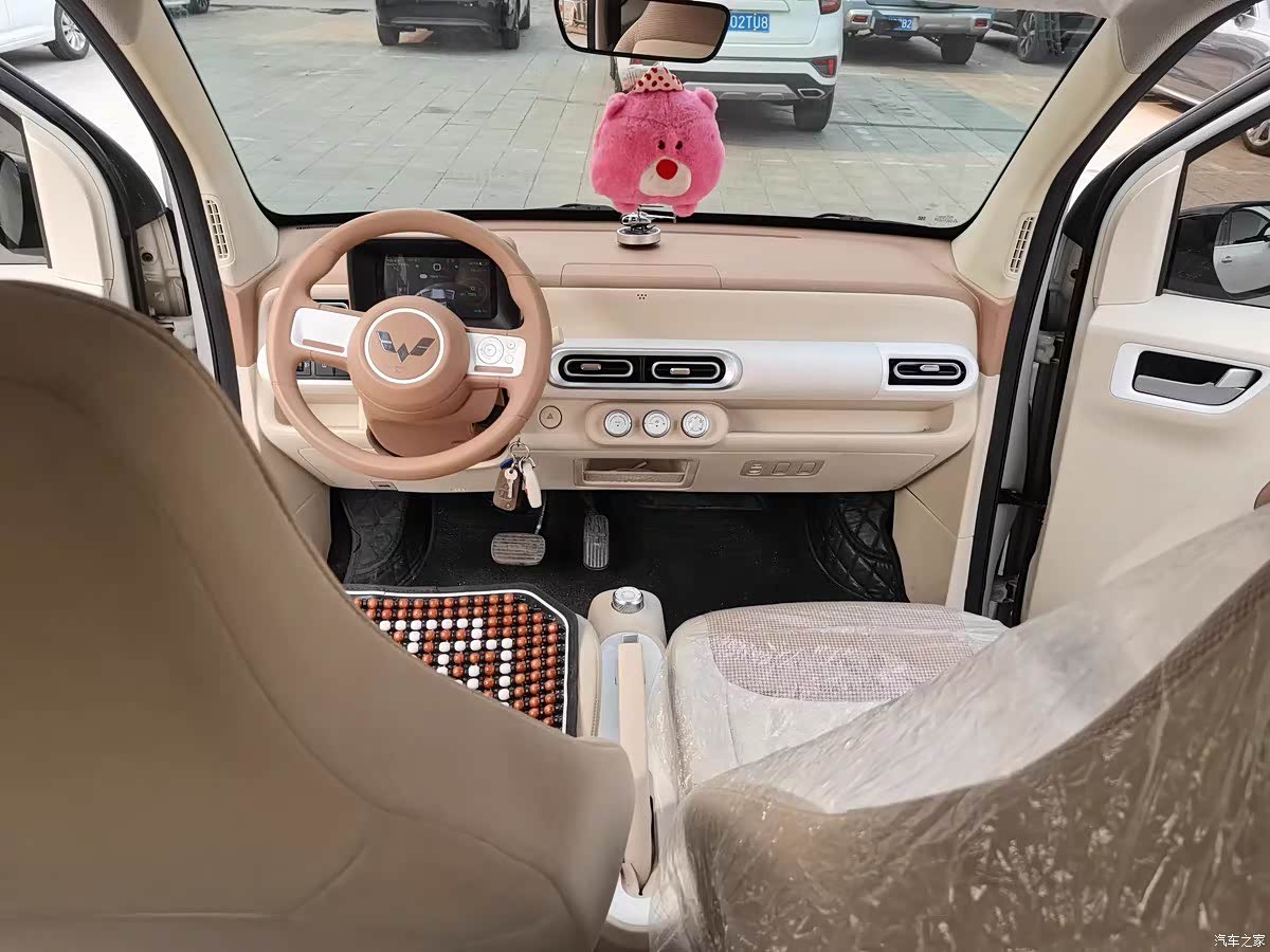 外观是真可爱,我老婆选的奶白色,圆润的造型跟个小面包差不多,我老婆就是被这个设计还有这个颜色给拿捏了,别的车都不看就要这个车,每次开出去都挺开心的。