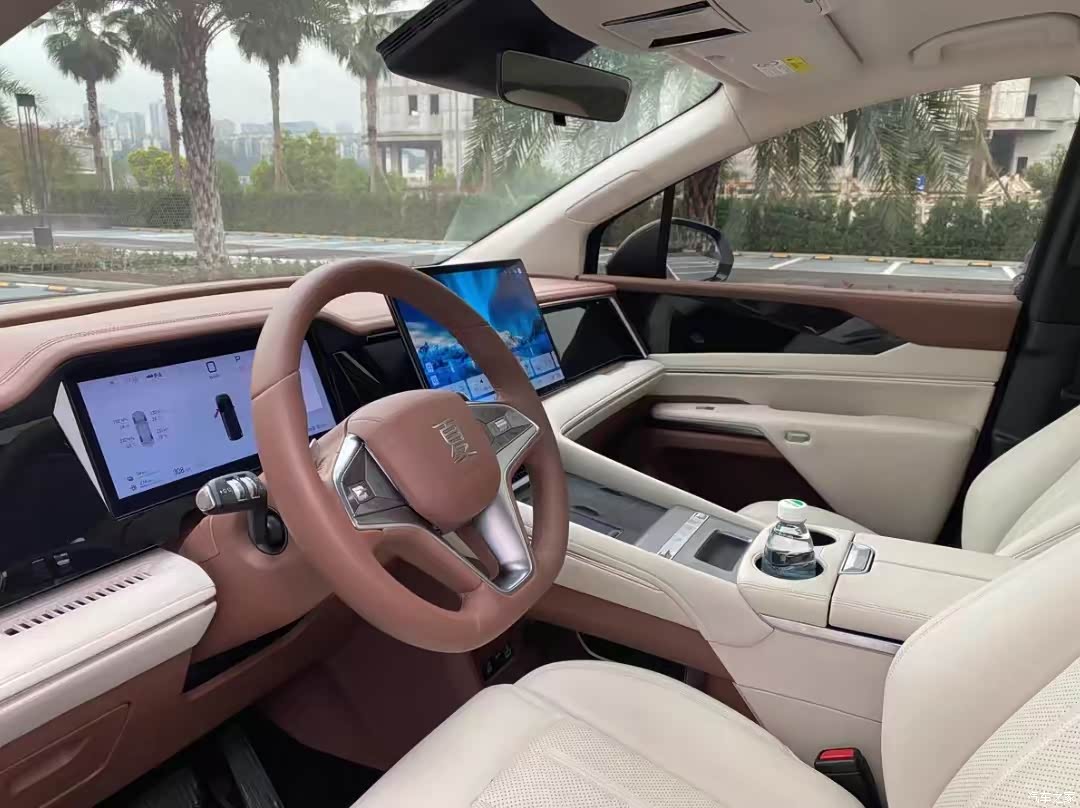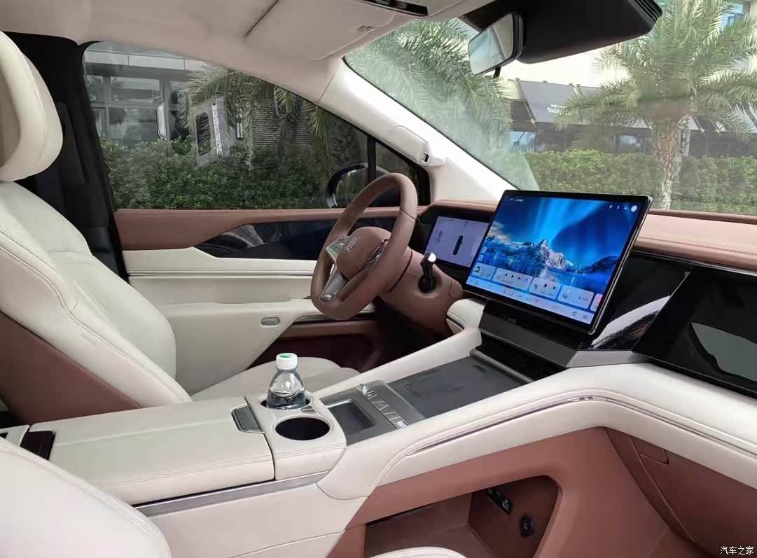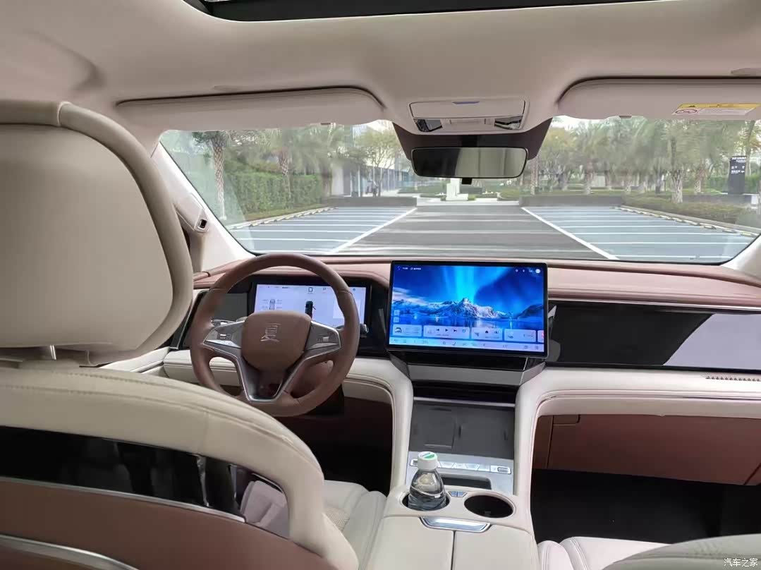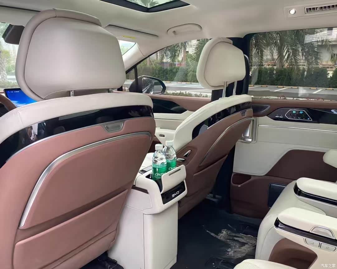 来点干货,说说用车,从外面看这车个头跟腾势不相上下,车头颜值还可以 ,内饰做工还行,座椅包裹性很强,中控大屏不错,水杯槽一定要好好表扬,水杯槽的深度是两层的,而且非常深,正常的矿泉水可以完全放进去,不会当道右手靠着扶手箱,而像红牛这种比较矮的放在第一层也可以很好拿出来。空间没有腾势D9大,不过也够用了,想三排坐的舒服,二排座椅得往前移,车上配置该有也有了,后排小桌板,高配才有的吸顶屏流媒体后视镜,车上的实体按键好评,前后排保留很多。 三排座椅可以手动前后移动,靠背电动,有水杯架一个tipc接口还有音响。后备箱三排座椅折叠那空间无敌,跟货拉拉没啥区别挺大,这个布局比D9好。驾驶不错,好开,转弯半径小,底盘确实还凑合,过减速带时“砰砰”两声干脆利落,颠簸被过滤得七七八八,后排乘客不会觉得颠到“屁股疼”。不过悬挂调校偏软,快速过弯时侧倾明显,车身像被甩出去的“大船”,即便切换到运动模式,支撑性也只是稍有改善,所以这么大的车绝对不能追求操控体验,舒适度才是MPV最大的追求,所以速度一定要慢。但是车没有hud和副驾驶的座椅按摩,主驾驶都配了,有点阉割配置,这不应该啊!提车时候新车没优惠,置换1.5,比亚迪本品置换8000,全险7000多。续航说一下,基本上纯电的话市区在110公里左右,这个续航还算满意,每周充电2次,电耗16个多,馈电油耗7.8,这个油耗比油车省多了吧。