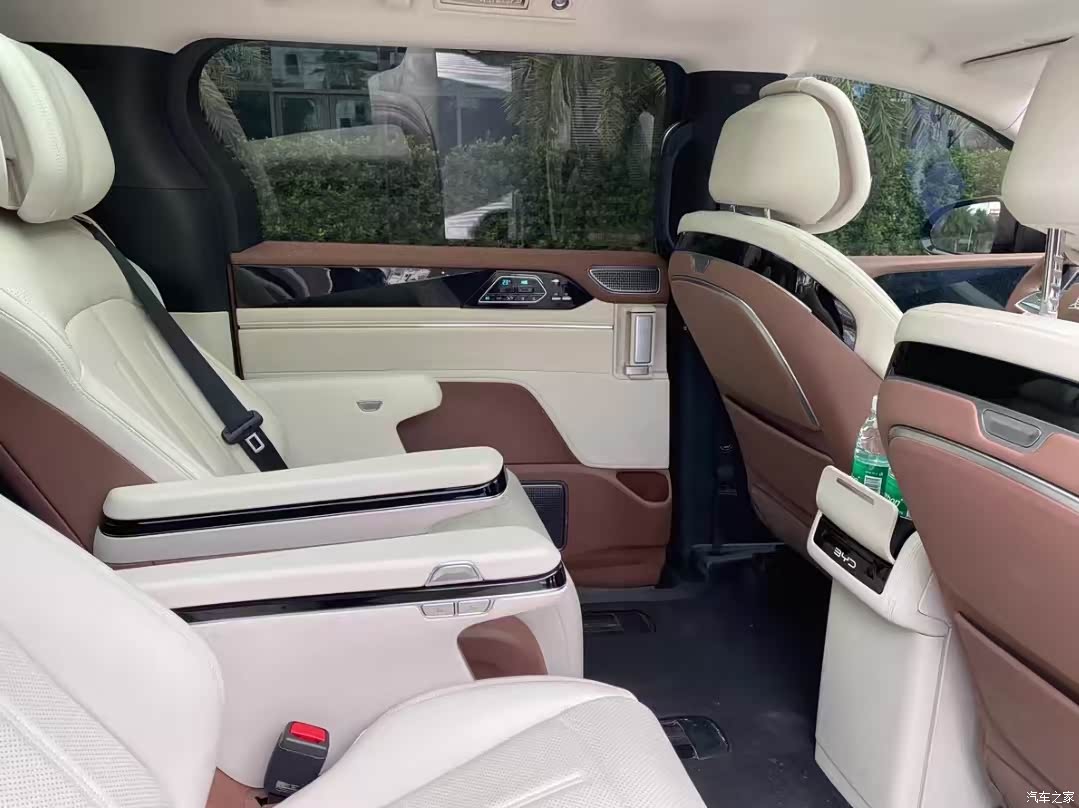 一键启动的位置居然是在中岛上的物理按键最中间,而且非常不明显,不放在右膝盖上面这个位置我很不理解。副驾驶的体验很不好,说说有多惨,顶配了副驾驶没有50W无线充电,重点是没有按摩也没有腿托,甚至坐垫的倾斜调节都没有,所以坐在副驾驶时候大腿是没办法完全承托的,也就是有娱乐屏和通风加热而已,和二排比可以说相当寒酸。二排座椅夏做的不错,就是坐在里面想开关门,按键有点远。空调放在门板上,而且是物理按键的好评,座椅相关的功能是在扶手的位置,不过扶手不是侧开而是推拉的,按键有点太小了不好按,再加上是钢琴镜面的容易沾指纹,看起来有点显脏。
