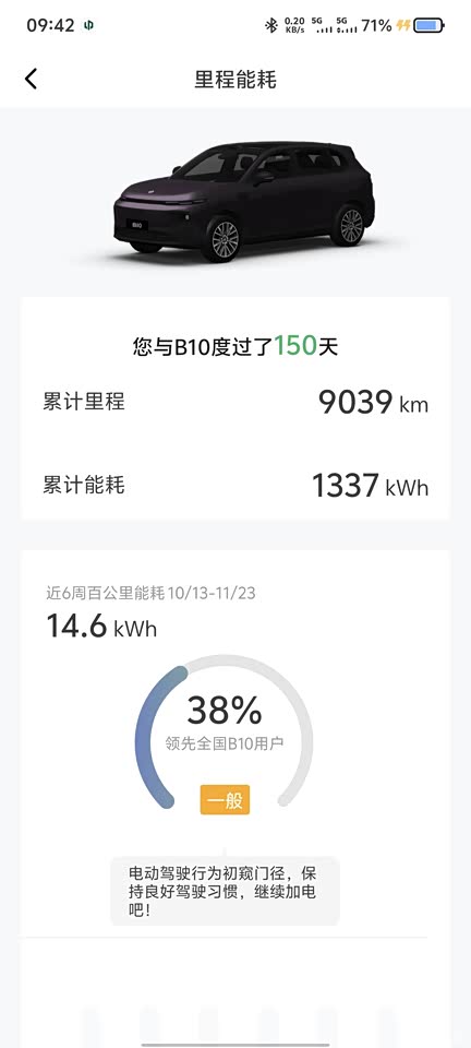 把我的小零开回家已经5个月了,里程表也快突破一万公里了。天气越来越冷了。每天通勤50公里,国庆自驾了贵阳-昆明-大理-丽江-玉龙雪山,也算是日常与旅行都有吧,接下来说一下提车150天的感受吧。 1.用车成本较低。我买的是600km版本,在贵阳现在这种天气,能跑440km左右。小区没有充电桩,都是在外面用快充,晚上十点后7毛钱一度.一个月电费也就一百多,平均一毛多一公里,和之前油车每月近1000的油费比,还是挺节省的。 2.充电快。现在充电桩普及率挺高的,国庆高峰期自驾也基本上没有遇到排队充电的情况,充电半小时就能冲到90%,上个厕所休息一下够充好了。 3.空间大、配置高。后排空间和座椅舒适性还是挺不错的。车机大屏幕配置比较高比较流畅,不卡,音响效果也不错。自驾期间后排铺成床,和对象两个人睡也不拥挤。 总的来说,零跑B10不是一台特别完美的车,但它用10万出头的价格,给到了15万以上级别的空间、配置和核心的智能驾驶体验,特别适合像我这样注重性价比、追求体验、偶尔自驾、露营、且每天有通勤需求的用户。