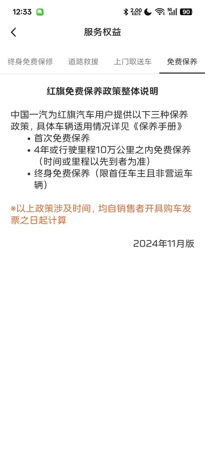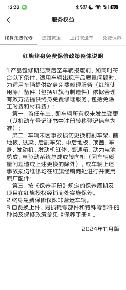 外观大气,底盘稳重,高速拐弯一点都不慌,直接高速通过,不用减速。 红旗和红柿,风车和红霞! 绿白的配色如翡翠般深得我心,一看就是绿色出行的纯种新能源环保电车! 又是国风翡翠感!绿中带一点白温润如玉! 前脸中间一抹红,恰似红宝石,点睛之笔! 售后政策是首任车主,非运营不限公里数的终身质保,看售后说明保养也是免费的,并且有接车服务,如果有代步车的话,还会提供代步车!售后的话,得看后续体验了,但是我希望我用不上!作为第一批吃螃蟹的人,第1台电车是七年后才开始出现故障的!感谢政策补贴2万多,再加上车辆报废的4000多,作为第一批吃螃蟹的纯电车主,感觉非常划算!