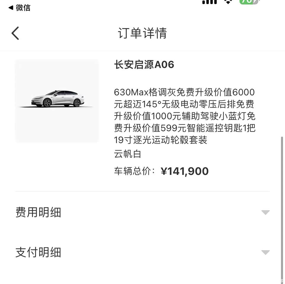 家里有一台小车空间很小,带家人出行很挤,所以想买一辆空间更大的车,后面了解到长安启源A06马上要发布了,所以就在等待,还没有开发布会前就下定了。上市后无论是价格还是配置都很让人满意。对这款车很期待所以一到车第二天我们就过去提了,看到4s店里的车太让我惊艳了,外观是低趴轿跑造型,前后贯穿式的灯超酷的。车里面的氛围灯随着音乐的节奏跳动简直让我太爱了。座椅摸起来也很舒服,选的灰色内饰很耐脏。仪表屏看起来很舒服,中控屏语音智能,反应灵敏,360影像显示清晰,开车停车都太方便啦。前后排座椅都可以电动调节角度,前排座椅还带有记忆功能,上车就自动调整到最舒服的角度啦,而且车内空间很大,小朋友说都可以在里面做俯卧撑了。掀背式的电动后备箱很实用,拍一拍就可以打开,还有个内嵌的空间够多了,后排还能一键放倒,全家出游,超市大采购都够用~还有很重要的是630/km续航,就算打折家用也够啦,800v 快充,充电也很快。还有前双叉臂全铝悬挂,一般2.30万车才有的,配备这个车上,比较良心,安全度有了保障。总的来说,这款车无论是性能还是配置都很符合大多数家庭的需求,尤其性价比很高,日常出行或者出门旅游都很适配,大大提升了生活的幸福度~