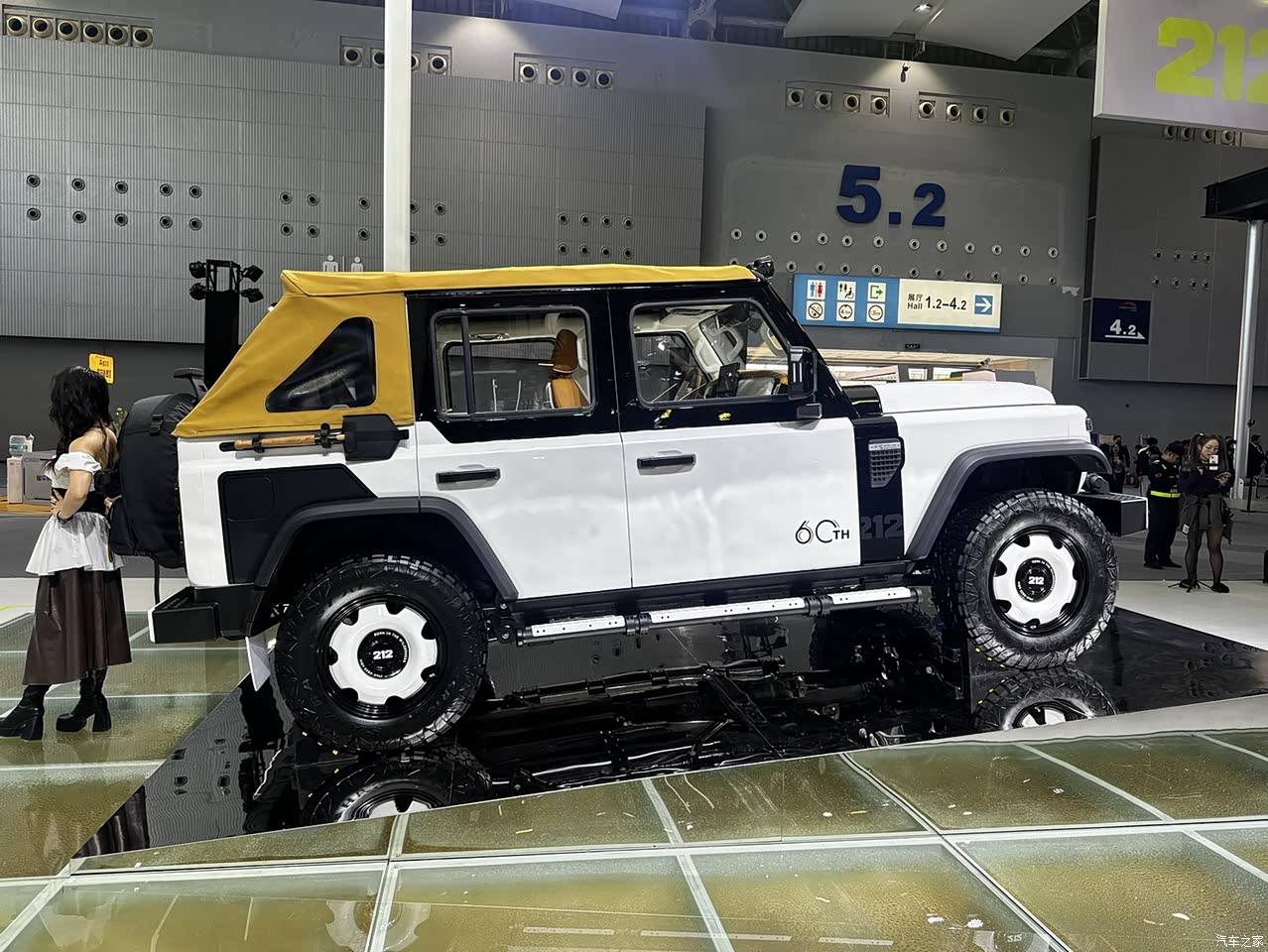 最满意的肯定是这幅外观造型,这也太帅了!应该没有哪个男孩子能拒绝这样的方盒子吧!212 T01延续了212经典车型的外观,圆灯、防空灯等经典元素也都保留了下来,特别有情怀。而且整个外观的可玩性也很高,像现场就摆放了很多台基于212 T01升级而来的版本,复古的轮毂、涉水喉、后车顶改皮质敞篷、车顶行李架等等,玩法特别多样。后期可以根据自己对车的理解和需求进行打造,这点就特好,成年人的大玩具