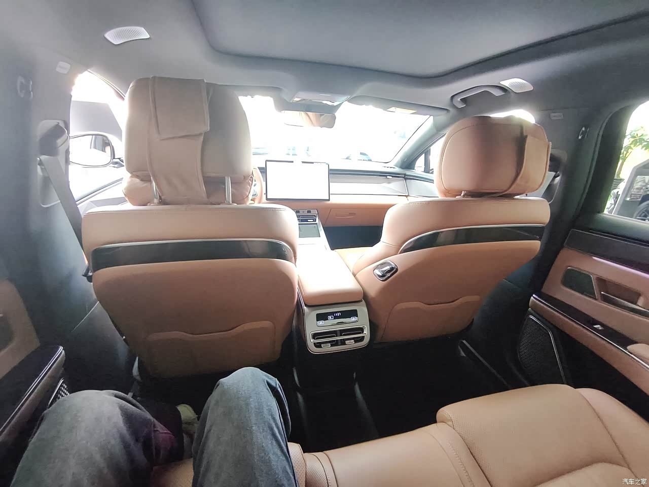 后排空间非常大,我身高1米73,体重130斤。 跷二郎腿完全没问题,头部空间也比想象中充裕。 后备箱深度足够,装几个行李箱还是问题不大的。