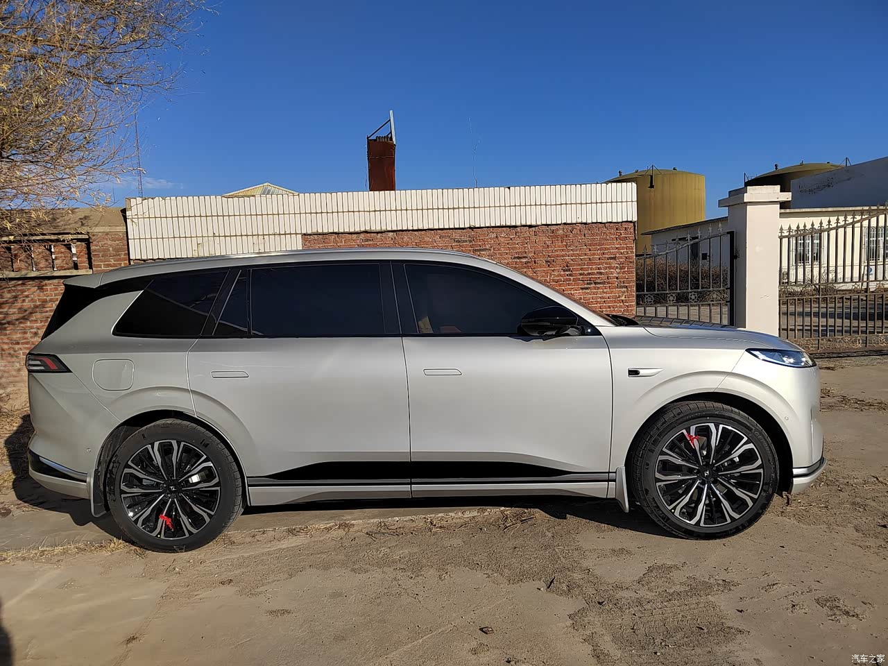外观只能说还可以吧,向阳金的颜色在阳光下是金色的,阴暗处偏灰色。轮毂21寸全铝合金,很威武大气。我觉得比智己好看。