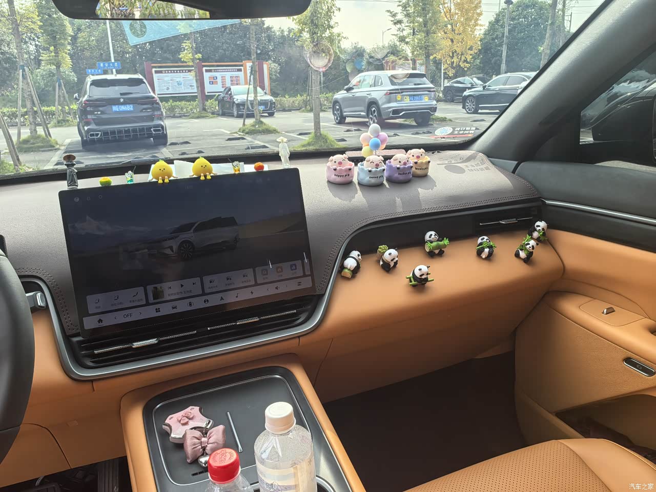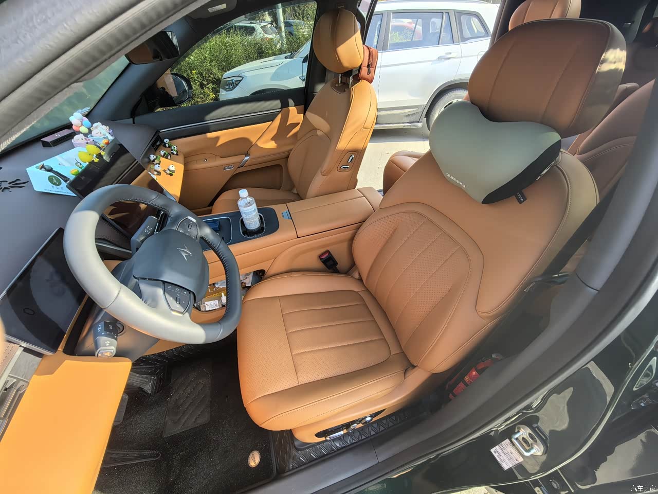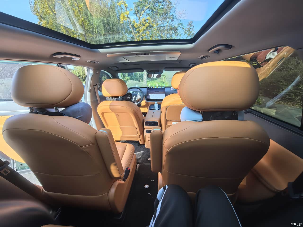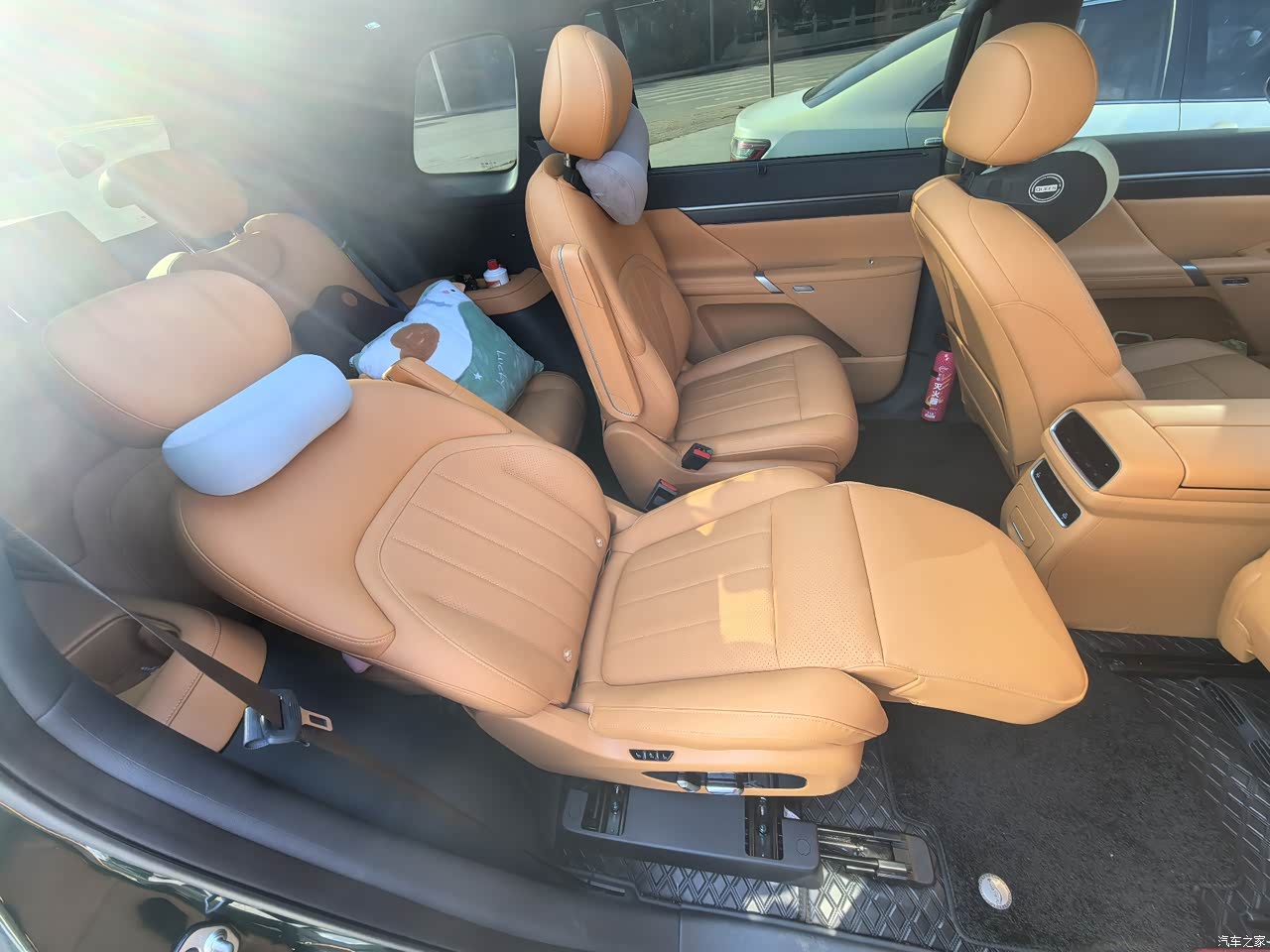 座椅坐着软乎乎的,不管是前排还是后排,坐久了也不觉得累,主驾还有按摩功能,开长途的时候开着按摩,腰不酸背不痛,特别舒服,后排座椅也能调节,孩子坐的时候能调个舒服的角度,车内气味也不大,刚提车的时候就没什么刺鼻的味道,晾了几天之后几乎没味了,不用怕甲醛超标,坐里面不呛人,棕色内饰看着也温馨,和座椅搭配着很协调,坐里面很舒服。