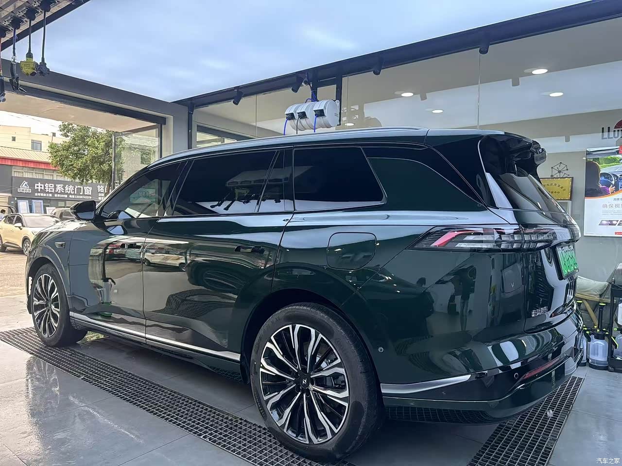 我这绿色外观本来就耐看,前脸设计也好看,是贯穿式的大灯,细长细长的,晚上点亮后特别亮,辨识度也高,看着很大气,中网是全封闭式的,中间嵌着车标,看着很整齐,不杂乱,侧面造型也不错,车身线条很平直,车顶是悬浮式的,看着很时尚,车窗四周有熏黑饰条,还有隐藏式的车门把手,整体看着很干净利落,不会显得臃肿,绿色外观配着这个造型,越看越顺眼,出门开着也有面。