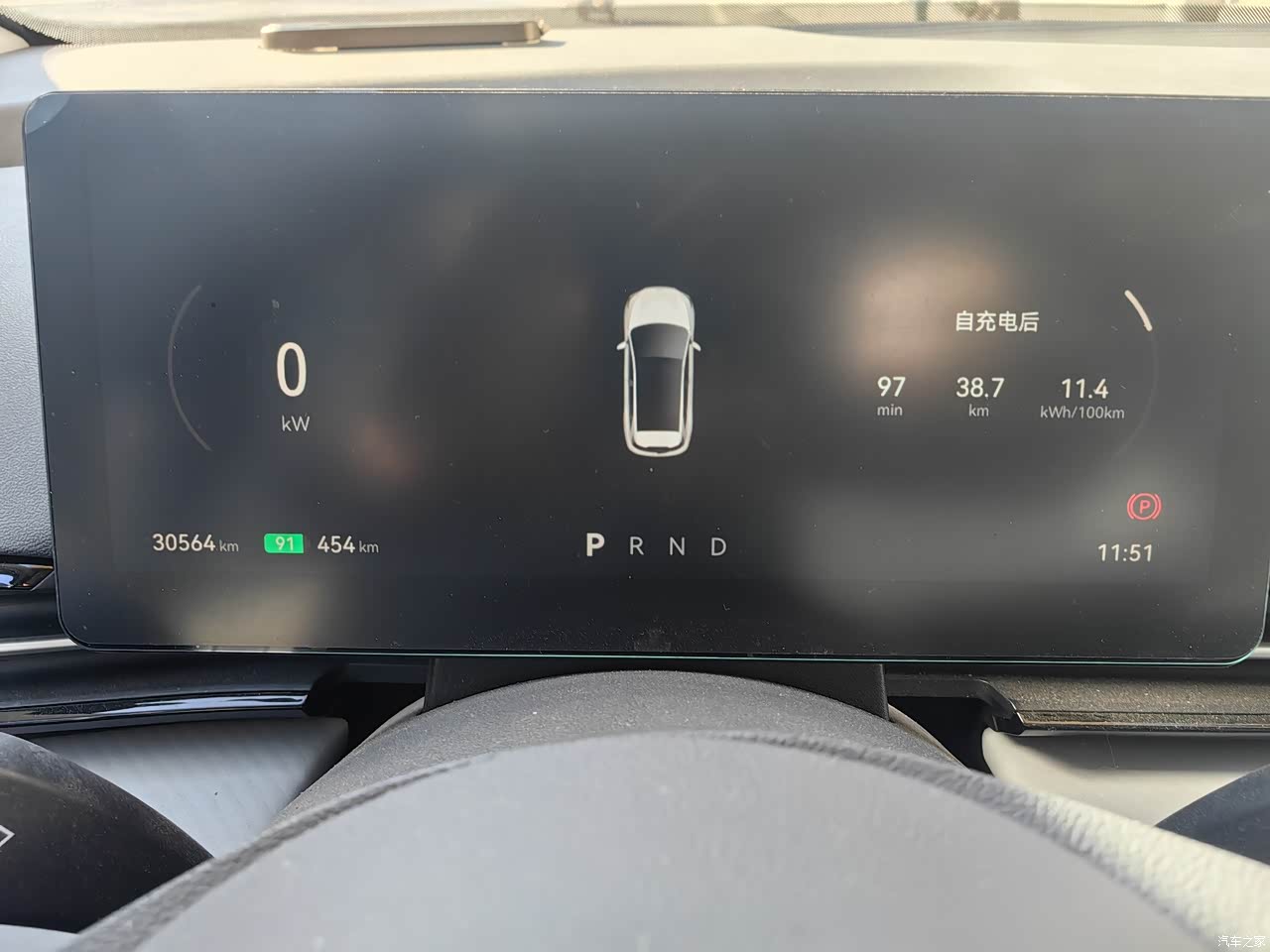 93%的电量实际行驶过610km,当然是在平均六七十的车速、走国道、未开空调的工况下,电量后期赶上下雨,续航有明显打折,要不然那次续航能破700km。还有一次百公里电耗为8.5kWh,正好在20000公里首保当天,90%的电量,实际行驶580.9km。当然实际续航以及电耗跟多方面因素有关,包括车主脚法,环境温度,是否开启空调制冷或者制热,是否连续上坡、下坡,是否下雨,是否高速行驶等等。综合近30000公里行驶经验得出的结论,我这辆车在多数平路,春秋(环境温度一般为10到25度)不开空调,不下雨的工况下: 车速60-70 1%的电约跑7公里左右 车速70-80 1%的电跑约6公里左右 车速80-90 1%的电约跑5公里左右 车速90-100 1%的电约跑4公里左右 车速100-110 1%的电约跑3公里左右 特别强调一下29%-14%的电量区间,该区间电最耐用,温度在10到25度时我1%的电大多都是能行驶10公里,当然依然是车速六七十,不开空调,不下雨的工况下,不过14%以下电量区间,电很不耐用基本上1%的电也就跑三四公里,所以,万一电量低于14%就要及时充电了,避免趴窝。