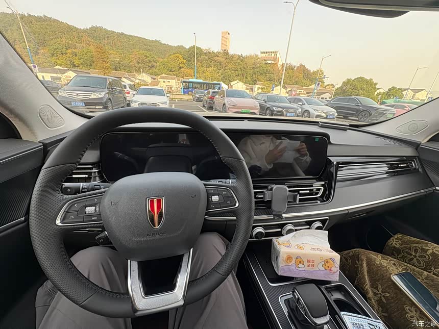 在和星越L的对比时,红旗的内饰是更加打动我的地方。我选的是红内,搭配红旗标和碳纤维饰板,确实能够提供给我更好的情绪价值。
