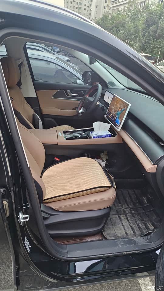 座椅主打棕色系,控制台和车门以及后备箱都是黑色,耐脏好打理,质感也很不错。自己找人做了全包脚垫。