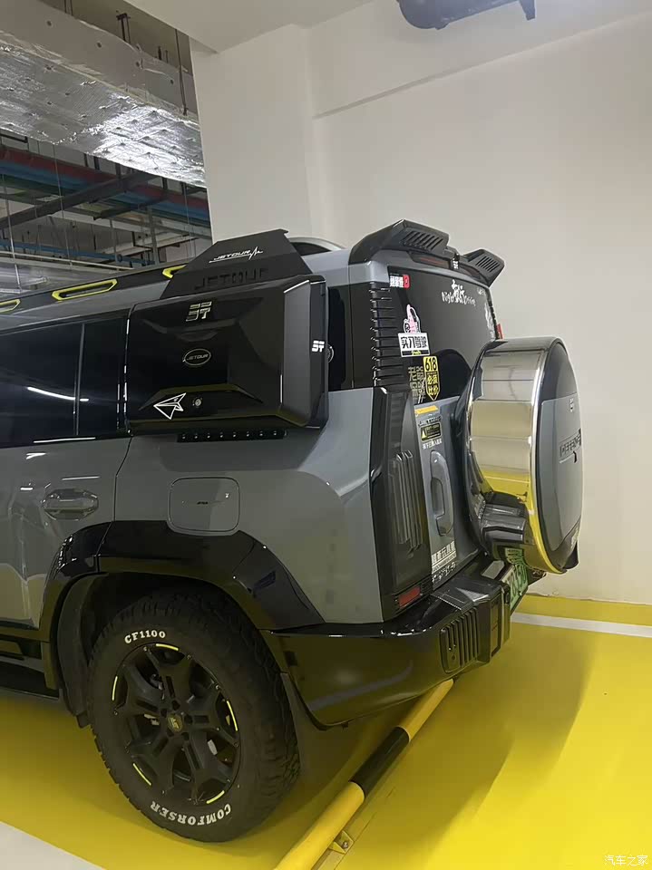 外观无敌,颜值很高,我订的是烟雨青色的车漆,非常耐脏和耐看。旅行者/山海T2的改装件很多。我自己还手搓了一个全尺寸备胎罩。