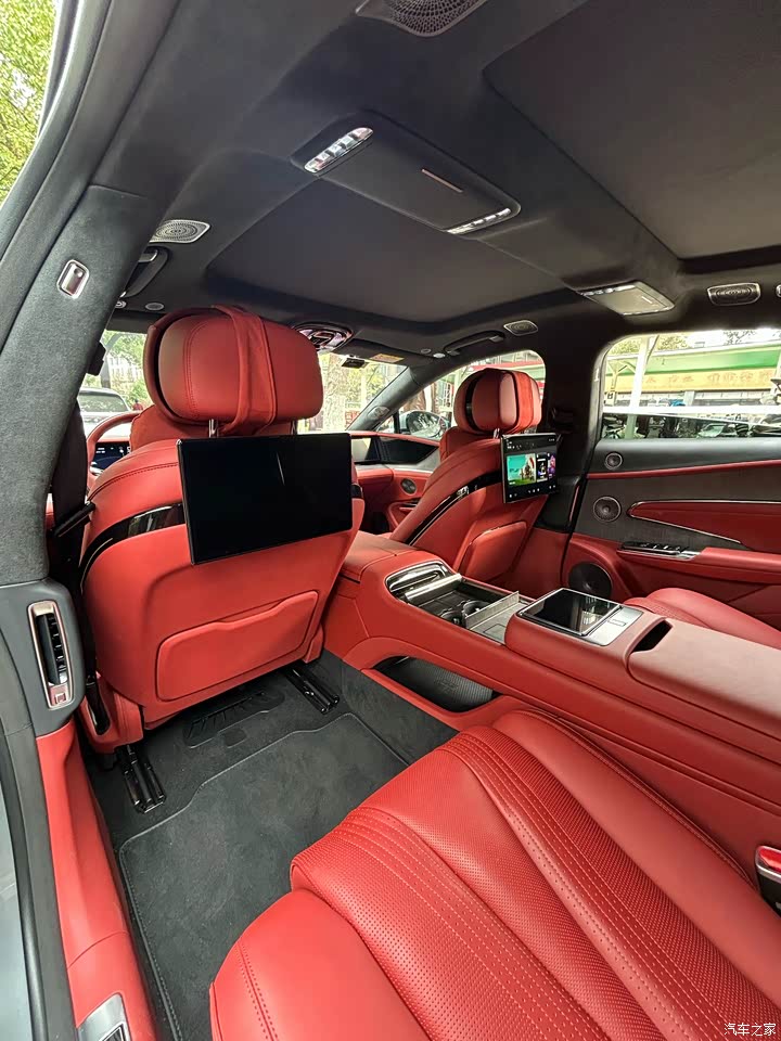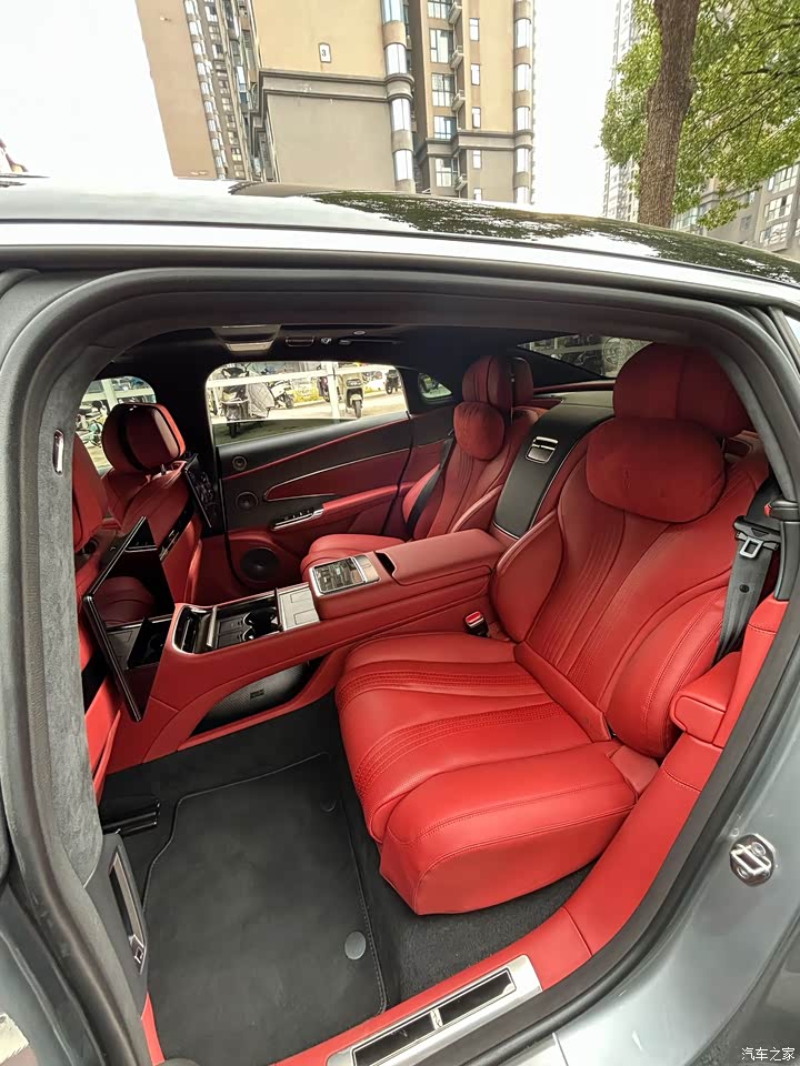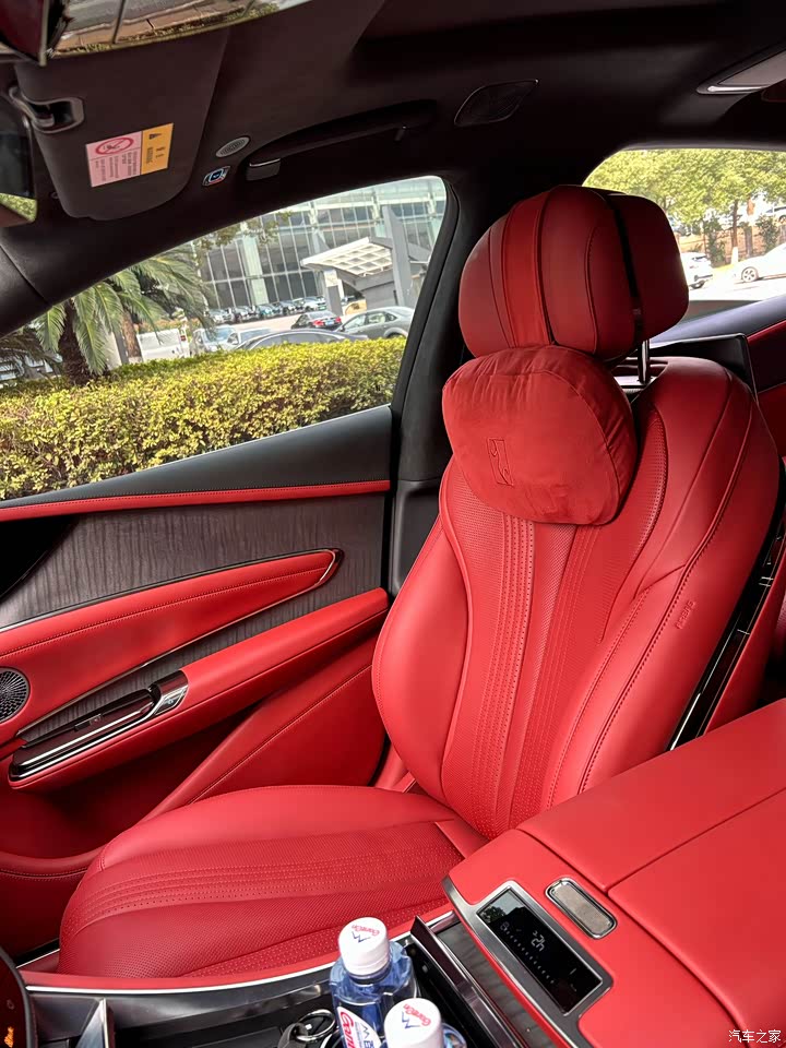 柔软的nappa真皮,高级又舒服。还有靠背上的小枕头,软软的真的好舒服。家里人都说这个好舒服,比别的车都舒服。木饰板也很好看,原木的简单就很高级。没有什么塑料质感。确实用料扎实,是百万级座驾的感觉