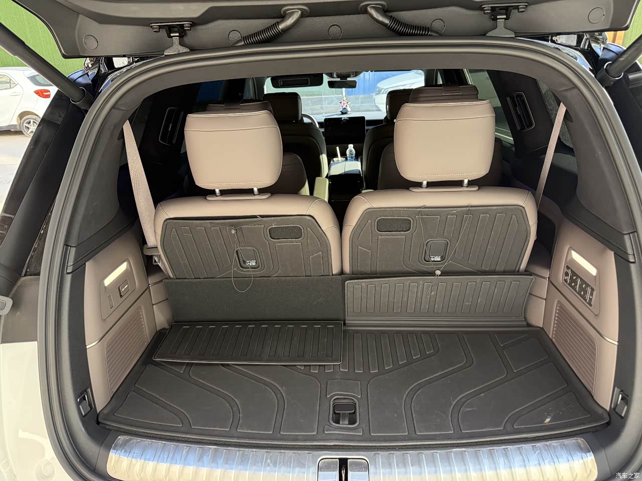 空间真的大,我178的身高,主驾驶的视野非常开阔,二排可以翘着腿坐,横向空间体验也非常好,头部空间3拳以上,2排正常坐的情况下,3排坐人的情况下,正常坐姿腿部还是可以有1拳的空间,确实很惊喜。而且还有隐私玻璃,真香。 后备箱可以放下3-4个整理箱,还有下沉空间,在加上前备箱,简直无敌,空间真的又多又大又够用。