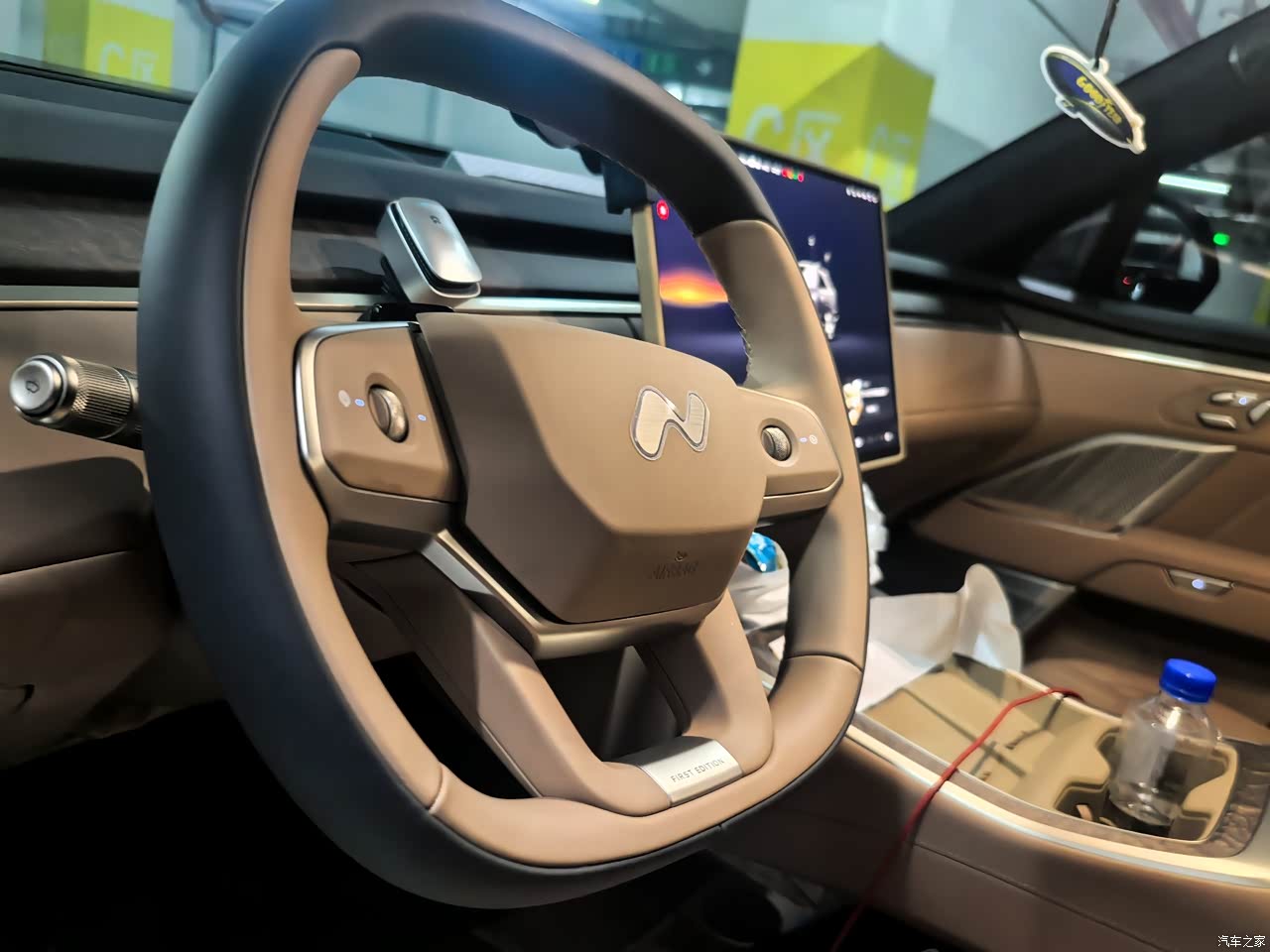 本来中意的是米白色的内饰,但是想到有两个小朋友,就实在是不敢选择白色。最终提车的时候确定的是这一款棕色。拿到车的那一刻真觉得,这颜色也选对了,完全贴合我们这种奶爸,但内心也不失年轻的年纪。耐看,而且更重要的是,耐脏。 L90的内饰还有一点能打动我的就是从车头到车尾的木饰板,低调的豪华感油然而生,这种极具设计感的基因,也许也是蔚来与生俱来的。