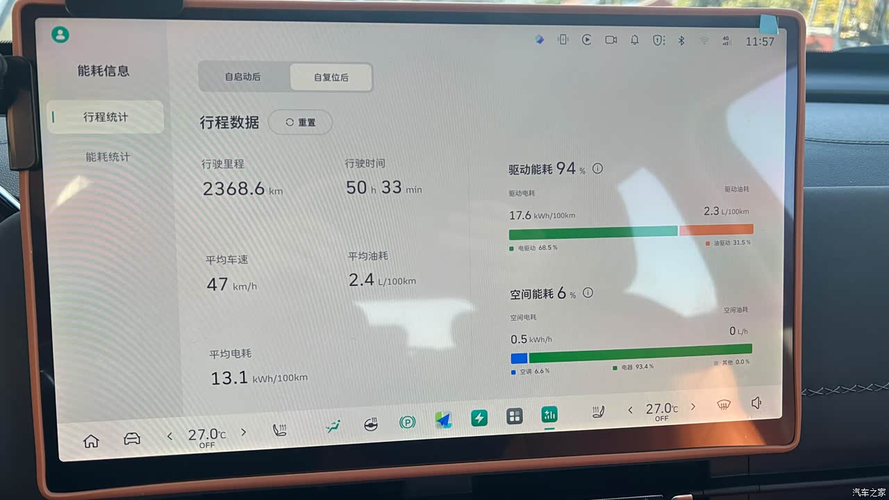纯电:买的是165智驾版本的,10.13提车到现在一个月多一点跑了大概2000多公里了,我上班地方距离大概是63公里,70%高速30%城郊区道路(高速限速100,一般设定105),一趟来回满电情况下基本能跑100公里多一点,因为有保电策略,剩余12%电就自动转为纯电优先模式了,所以实际电量预估能跑110-120左右这个应该比较接近wltc真实续航了。最后说说油耗:用油一共700多公里,提车以后加了53升,中间加了有28-9升左右目前还有app显示还有19。还没有试过满油满电续航。