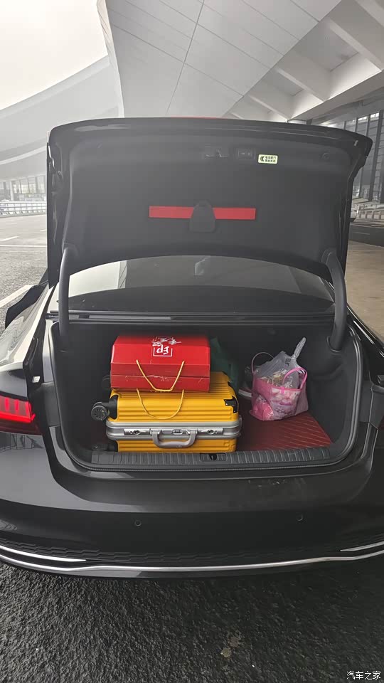 当然,世上任何事物都没有十全十美的。上汽奥迪A7L的20寸低扁平比对乘坐舒适感会减弱,同时后备箱空间实用性存在短板。尽管A7L凭借3026mm超长轴距营造了宽适的乘坐空间,但实际使用中仍有两处略显不足: 其一,255/40/20轮毂设计过于侧重性能表现。 40%的扁平比虽然强化了动力传递效率,但薄胎壁大幅削弱了日常驾驶舒适性,过坑洼路面时颠簸感明显。更大的轮毂外扩尺寸(J值增加)导致转向时轮毂易与路肩刮蹭,尤其在窄路掉头或侧方停车时需格外谨慎,增加了用车心理负担。 其二,后备箱空间未达预期。 虽然官方标注384L容积,但实际装载能力受限于较浅的纵深(仅约1130mm)和480mm的矮小高度,全家出游时难以容纳大件行李。后备箱的储物实用性明显逊色,长途出行需频繁优化物品摆放。