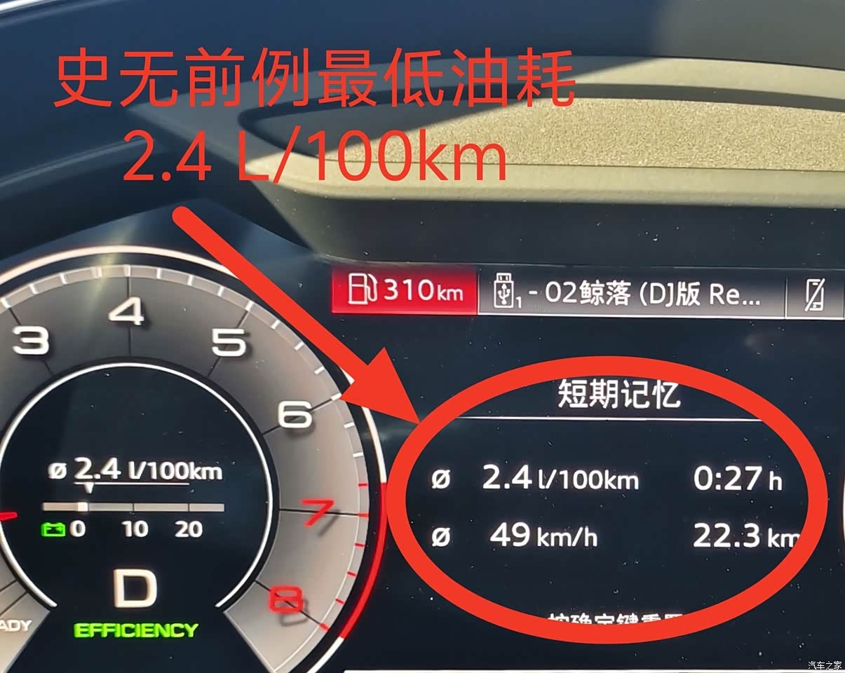 A7L的油耗展现鲜明反差:市区拥堵时飙升,高速巡航却能极致节能,整体受驾驶习惯与路况深度支配。 首先,分路况油耗差异显著: 在市区拥堵时:频繁启停导致油耗激增,2.0T车型可达11–14.5L/100km(魔都早高峰极端达14.5L); 在高速巡航时:稳速状态下(90–100km/h)油耗骤降,2.0T可低至5.6–6.0L/100km,优于工信部数据(7.4L),国道匀速甚至突破5.7L。 综合平均:2.0T长期综合油耗约为9.6L/100km, 其次,驾驶习惯决定30%浮动: 温和驾驶:预判路况滑行、ECO模式+自动启停,市区可压至9.5L; 激进操作:急加速或S挡动态模式,油耗飙升30%以上。