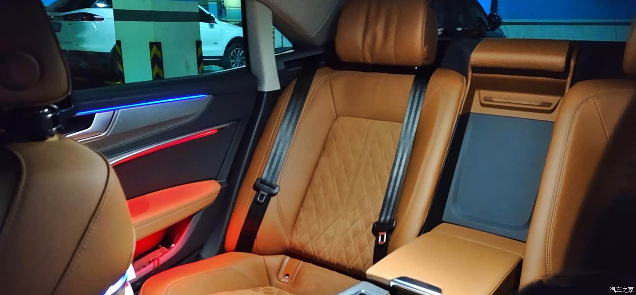 A7L凭借超长轴距和5米级车身,空间表现卓越,完美兼顾乘适与储物需求。其车身尺寸达5076mm × 1908mm × 1429mm,配合3026mm长轴距,为乘客提供宽敞体验。我的身高为179cm,体重为72公斤,当坐在驾驶舱时,通过座椅调节前排腿部头部空间充足,驾驶无拘束;当我坐在后排座椅时,腿间距超两拳,而且轻松容纳三位成人,长途不压抑。