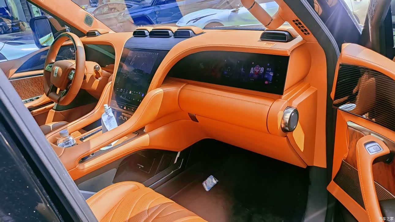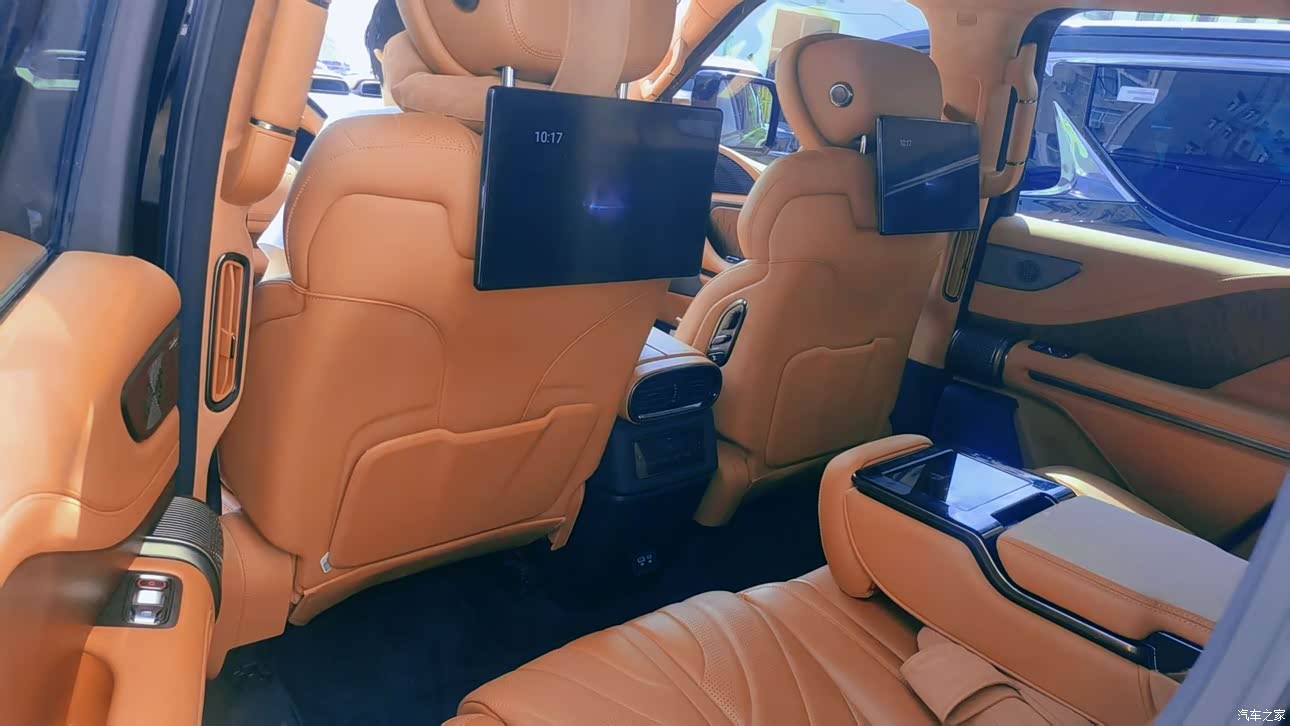 内饰布局很中式,用料还是很有品位的,带车里机互联,副驾驶也有娱乐大屏幕