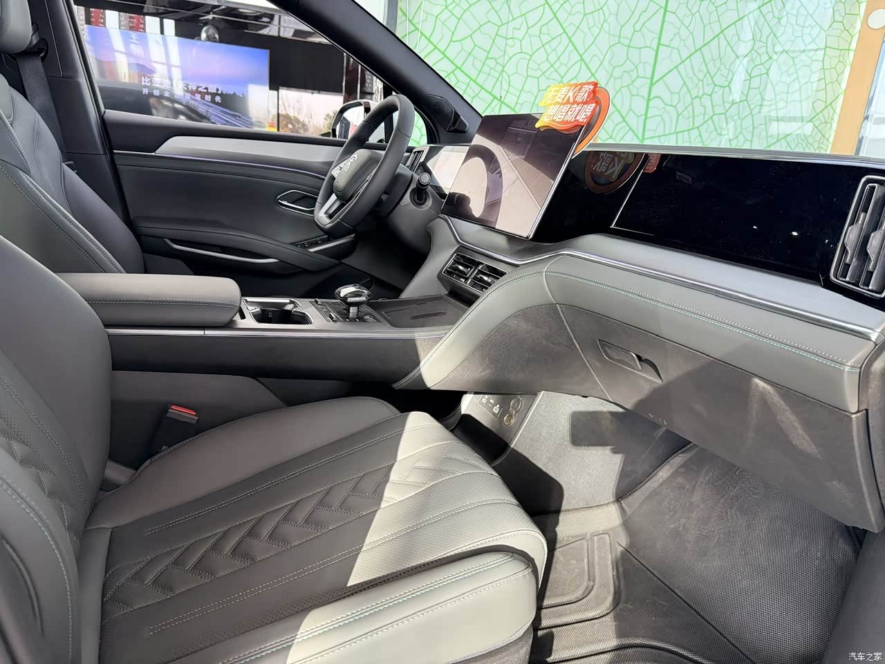 内饰的科技感还是有的,两个大屏幕尺寸很大,而且色彩分辨率啥的没啥毛病,手指在屏幕上操作的时候也没有出现卡顿的情况,就是形成历史的味道,我觉得挺重了些