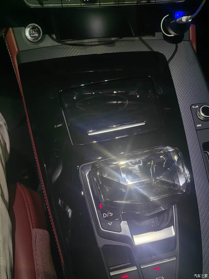 和大多数普通车子一样,满满的塑料感,我替大家体验了,内饰谈不上高级,加了氛围灯,中规中矩吧,买奥迪的用户多数应该也不太喜欢花里胡哨,想内饰好看的基本都选奔驰了,选奥迪还是看中它低调属性多一点。飞机档杆(可能也叫游艇档杆)原装的塑料盖子握感不怎么好,防滑设计容易藏污纳垢,我给换成了水晶档把,内饰嘛,自己喜欢改改就好,BBA的奥迪还是太低调了,人家沃尔沃都用水晶挡把了是吧,有些小细节迎合下大众喜好还是加分的。