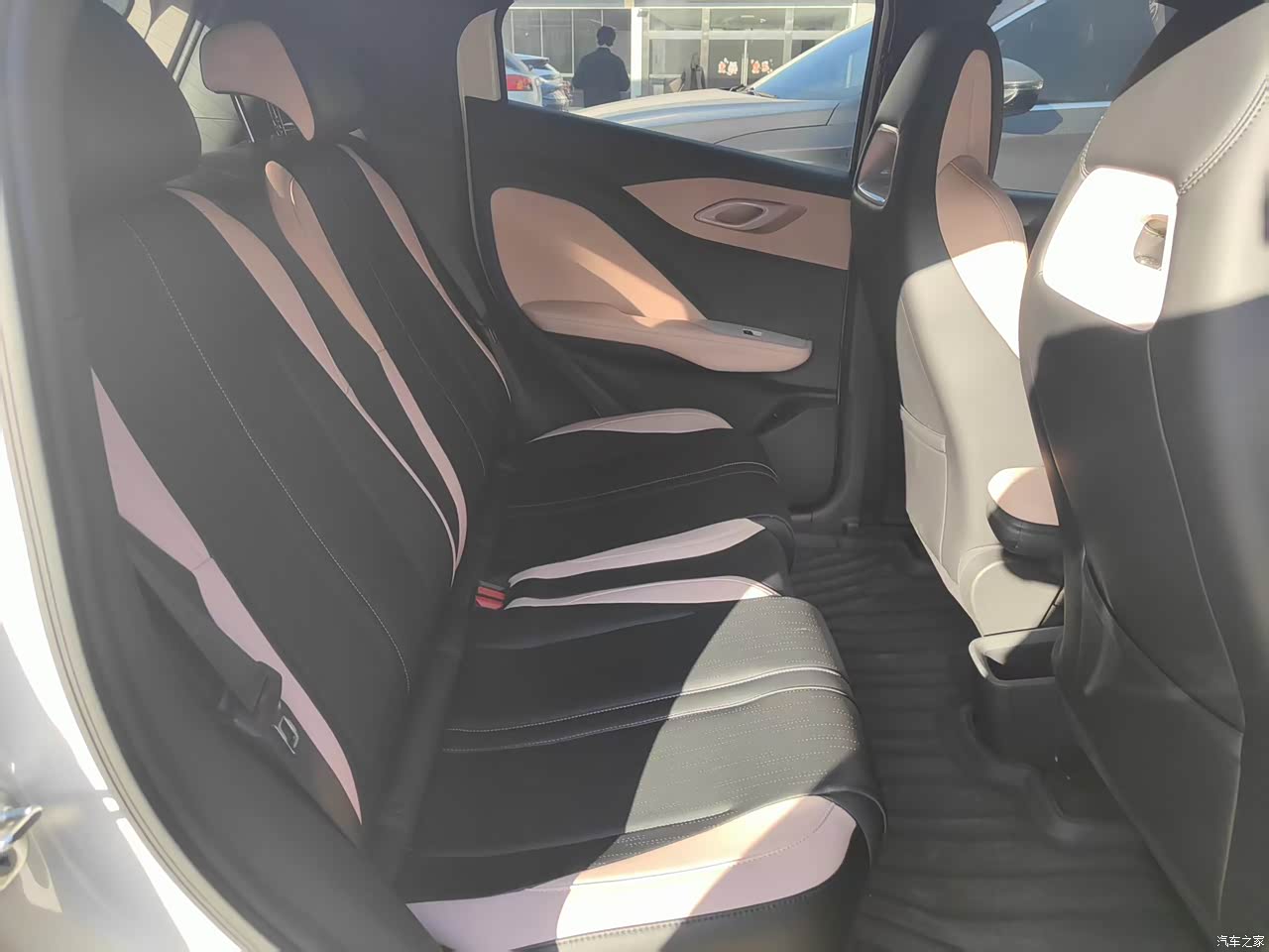 内饰是我最爱的粉色,摸上去是软乎乎的搪塑,不是硬邦邦的塑料。虽然没有座椅加热,但是座椅是仿皮的,冬天坐进去不冰屁股。