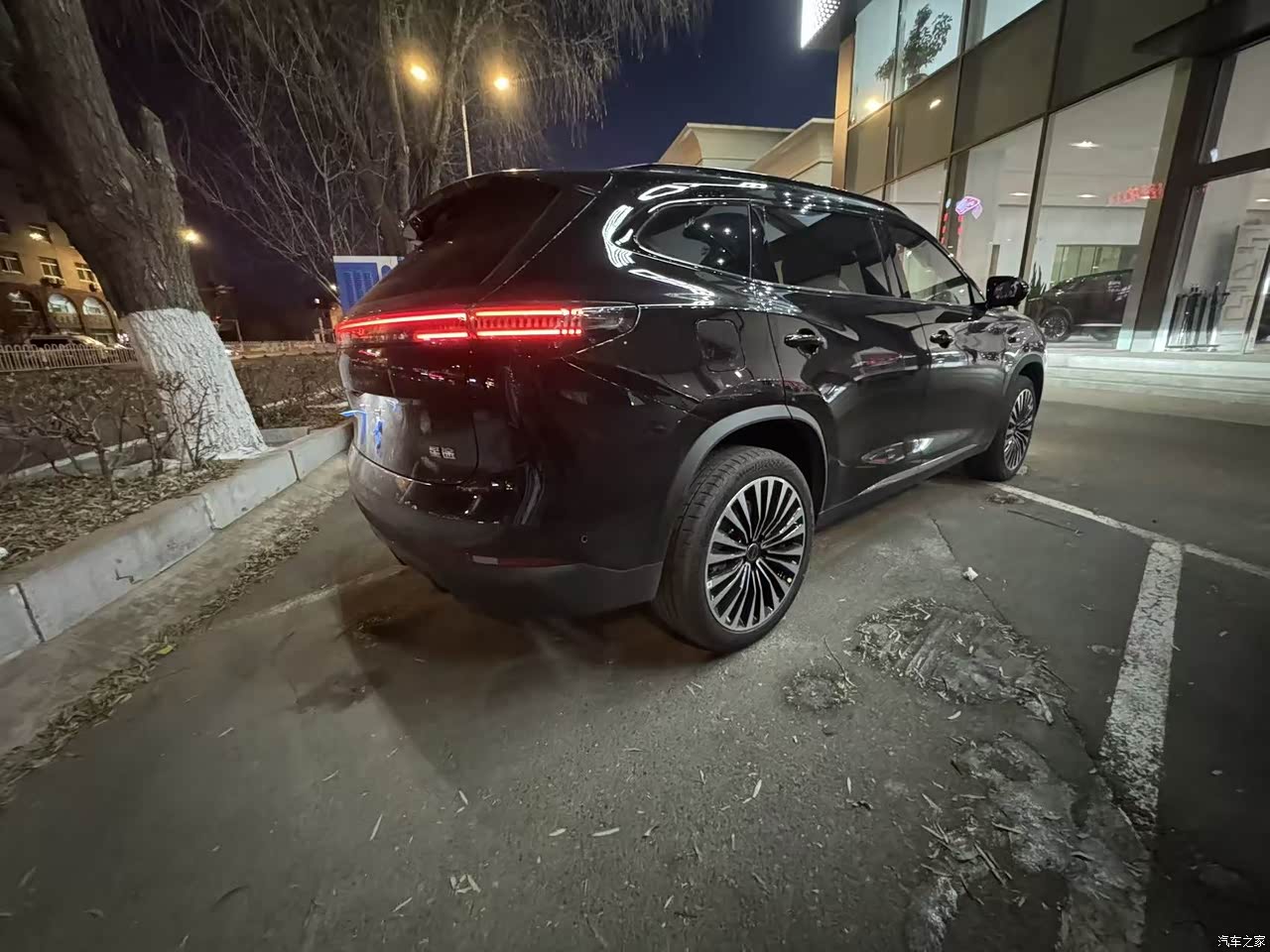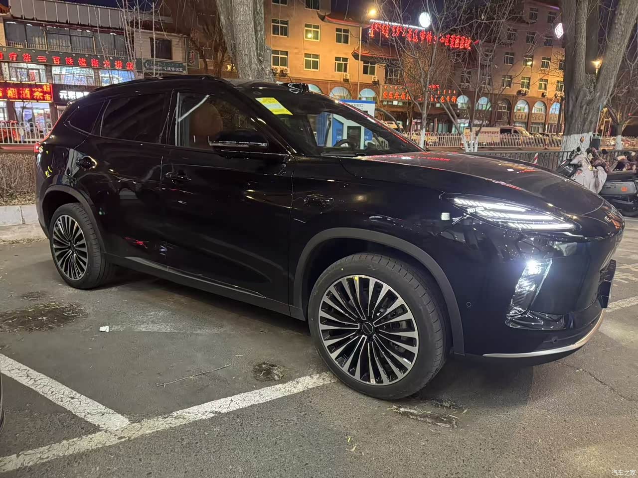 一袭曜石黑车身,经清水洗尽尘嚣后,竟如凝脂裹墨,在光影里流转着温润又凌厉的光泽,亮眼得让人移不开眼。最惊艳莫过于那472颗LED构筑的光影矩阵,车辆启动的刹那,光束如星子破夜而出,科幻感铺陈开来,仿佛穿越进未来幻境。 整车线条宛若一枚浑然天成的深海贝螺,古人云贝壳藏珠,喻示高贵不凡,这贝壳形大灯恰是点睛之笔,将整车格调悄然拉升,同价位车型中,这般用心的设计实属难得。更添惊喜的是夜间开门时,迎宾灯如月光倾泻,铺就一方温柔光路,仪式感拉满。 4870mm的修长车身、2800mm的越级轴距,明明是中型SUV的舒展体量,一袭玄黑却让它身姿如闪电奔袭,利落又灵动。这般兼具大气与锋芒的模样,让我忍不住唤它“小闪电”——既是对其墨色流光的描摹,亦是对这份惊艳设计的偏爱。