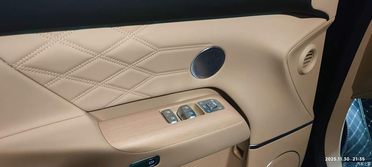 内饰精致,美观,颜色搭配豪华,温馨,做工精致,各种设计很实用,木饰面质感不错,水晶旋钮手感相当棒,几个案件质感也不错。空间舒适,底盘用料足,行驶质感好,车内气味小。