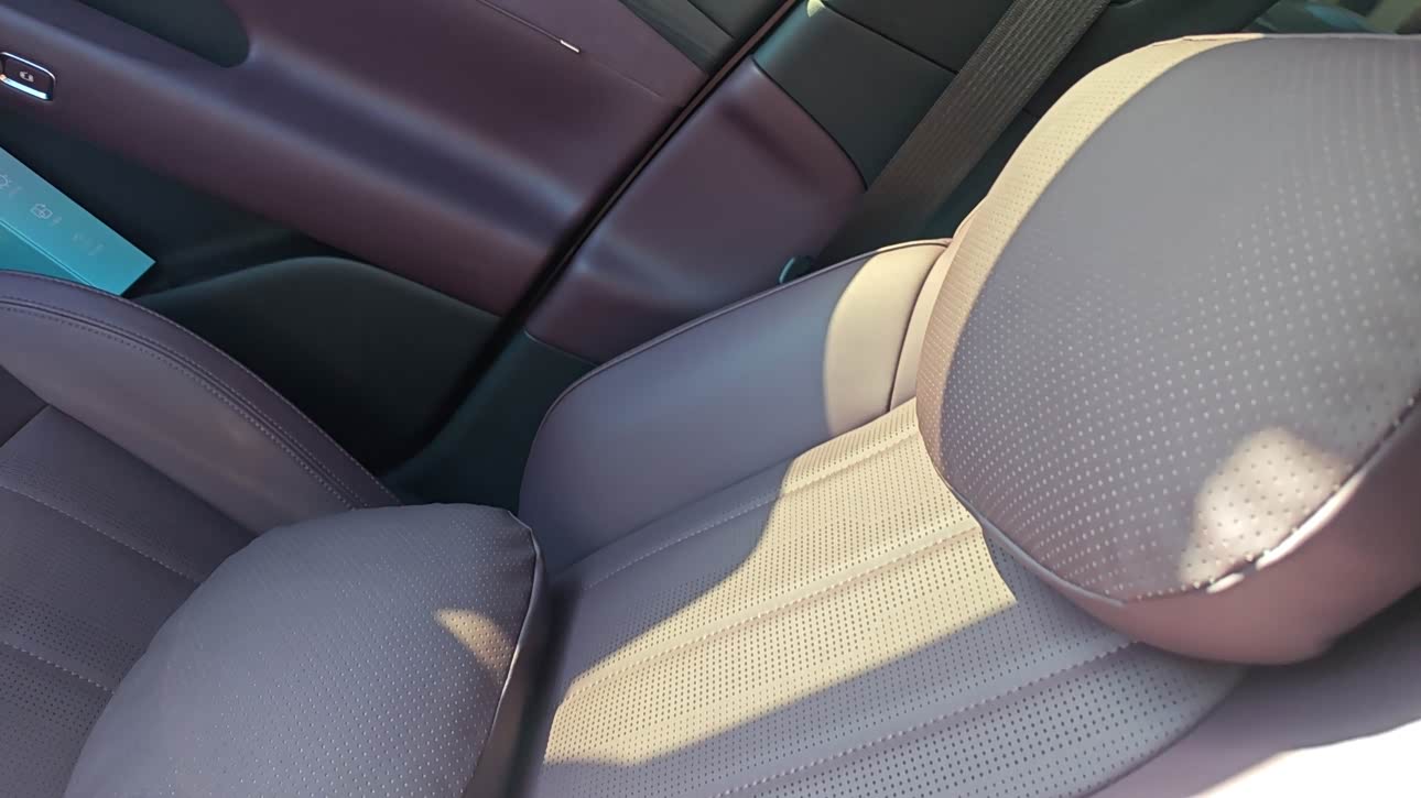 上车后给人的第一印象就是满满的设计感与精致感。车内不管是用料还是做工都非常讲究,凡是可以碰触到的地方大都是软性材质,细节之处的走边以及精细的做工无不透露者精致。中控设计的简洁大方,中控上的大屏幕悬浮式设计操作也十分顺手,给人一种豪华而又不会太繁琐的感觉。晚上开车的时候那种氛围灯环绕在整个内饰之间,紫色的内饰皮质配合氛围灯有种极其高级的感觉。各种功能区域划分也很巧妙,各个按键旋钮的设计阻尼都刚刚好,上手之后给人的感觉就是相当的舒服。连空调出风口的设计感十足转动时发出的咔哒声都悦耳至极。