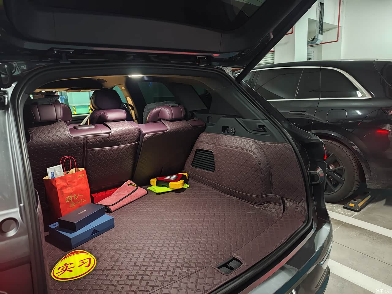 空间属于中大型SUV该有的状态,轴距2960mm摆在那,我身高一米七五,主驾调成我的习惯坐姿,后排我再坐一趟,膝盖离前排靠背有两拳多,腿部不顶,后排地台纯平,中间坐人脚能自然摆放,日常带长辈孩子更轻松,后备箱官方标590升,日常家用够用,上周儿子幼儿园活动要带小自行车和一堆用品,直接放进后舱,不费劲,后排靠背能按比例放倒,装载方式可以灵活变化,全车储物格也多,门板、中控台下方空间都大,水壶保温杯纸巾擦车布这些能有序放好,车里不乱。