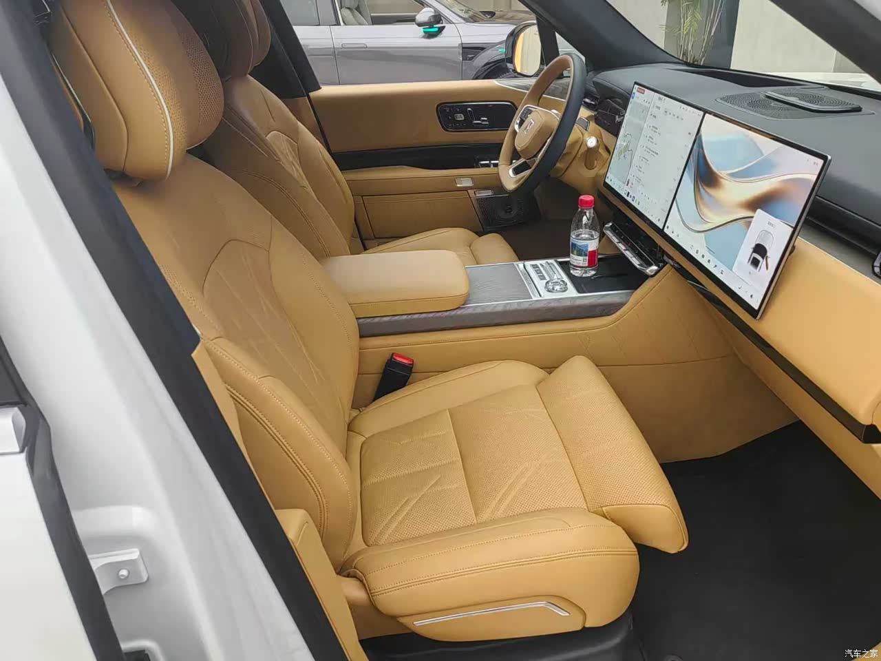 整体的内饰氛围感,科技化程度较高,同时搭配氛围灯,非常温馨豪华,内饰几乎都是Soft Nappa材质,用料很奢华,内饰豪华感足。车内屏幕数量够多但不杂乱,中控屏和仪表屏外加一个大尺寸的AR HUD组成了前排的智能空间,第二排还有一个单独的妙控屏,可以单独取出来当一个小平板操作。车内的噪音也控制的很好,在展厅关上门后听不到外面的声音,试驾的时候关上车窗也听不到车流的声音。