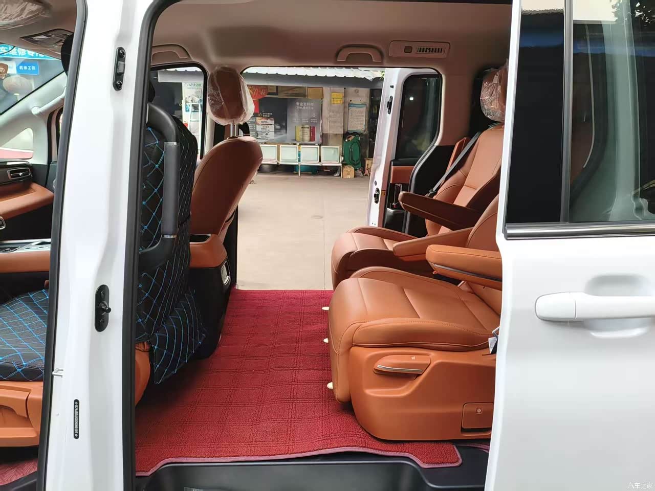 我们先试前排,我180cm的身高调完驾驶座,头顶还有一拳多距离,老婆最在意的储物空间没让人失望,中控台镂空处刚好塞下她的妈妈包,门板储物槽能放两瓶大矿泉水加雨伞,扶手箱深到能装下湿巾、创可贴这些“带娃神器”。她边摸软质包裹的内饰边说:“母婴级材质认证,这点对娃很重要。”最关键的第三排,我坐进去居然没顶头,腿部也有一拳空间。七座状态下的后备厢更惊喜,把婴儿车、两个28寸行李箱塞进去,还能放下孩子们的零食袋和玩具箱。上次全家去郊游,旧车后备箱根本不够用,这个空间太顶了。”她边说边把第三排放倒,瞬间腾出能装下折叠帐篷和露营推车的大空间。